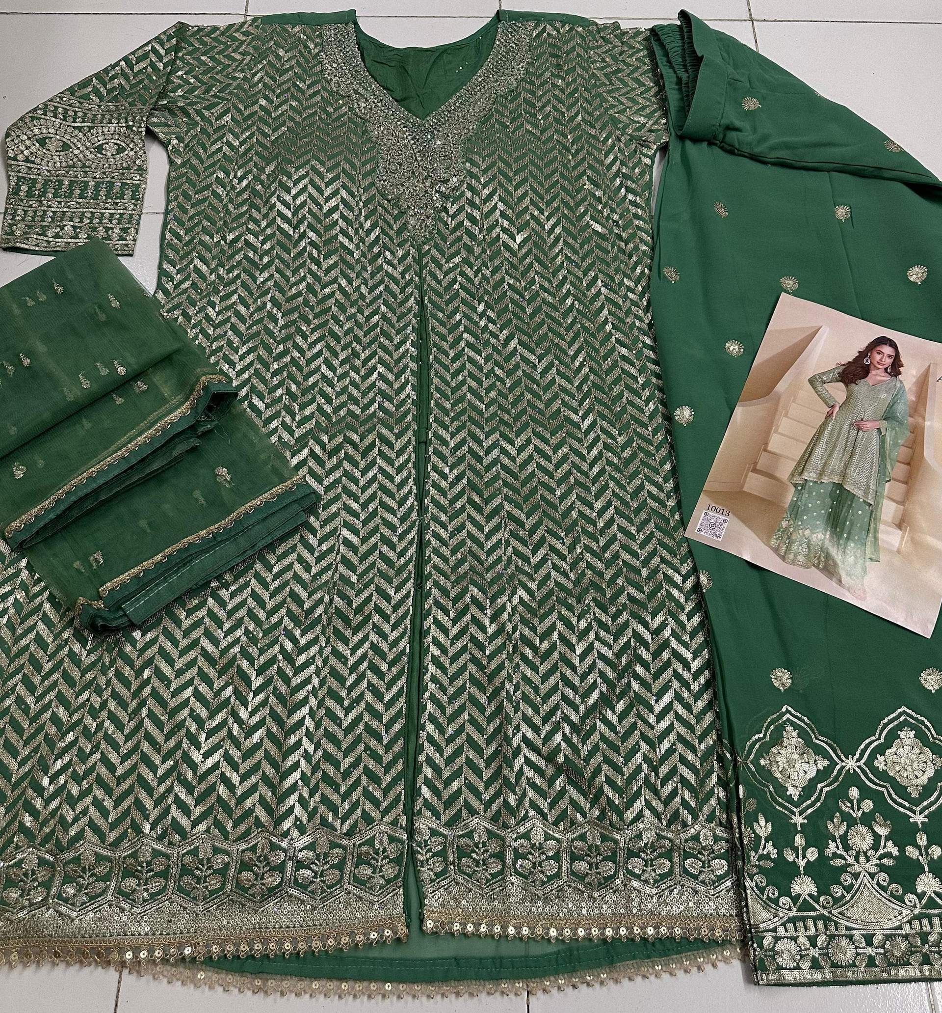 Aarshi Fashions Dark Green Heavy Georgette Palazzo Suit