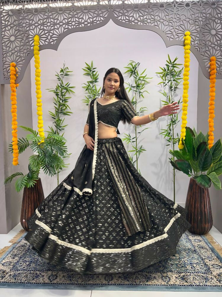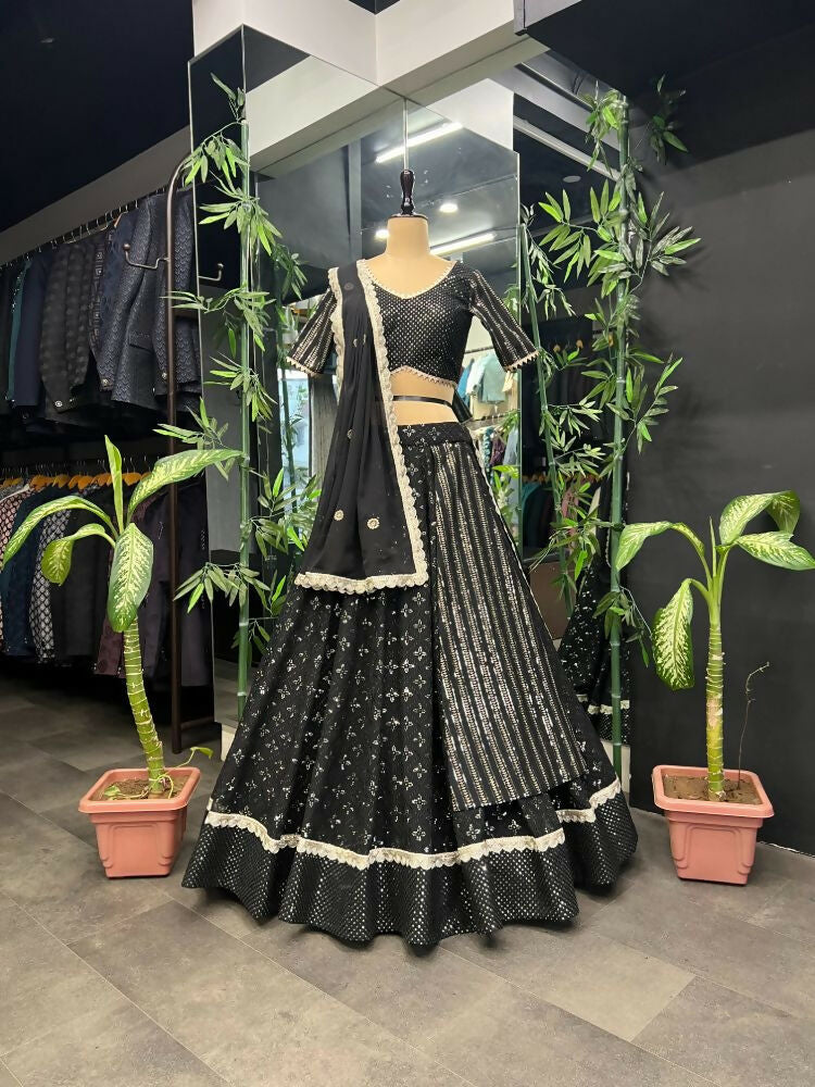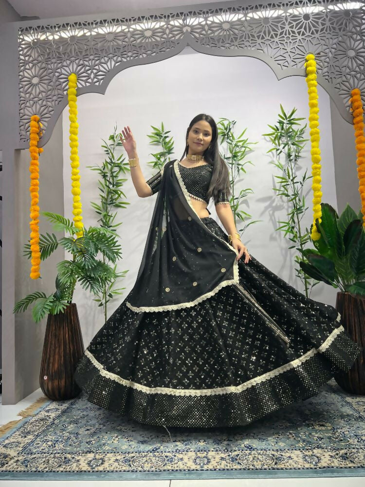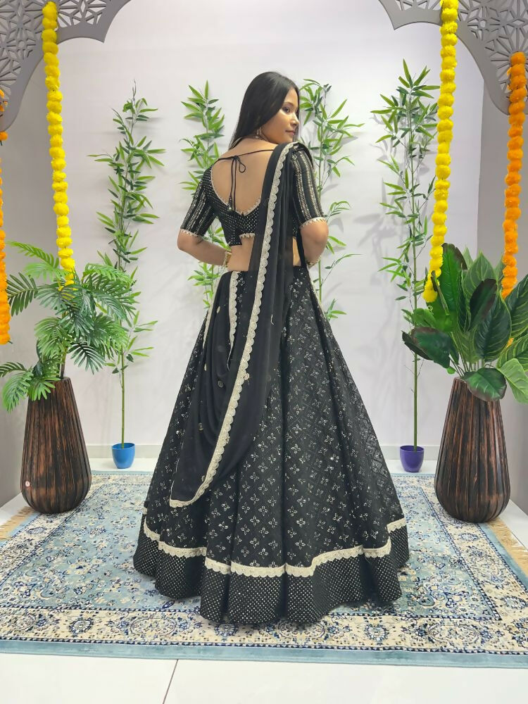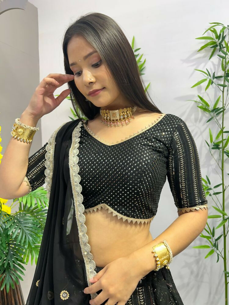 Aastha Fashion Black Heavy Georgette Heavy Embroidery+ Sequence +Ready Lace Semi Stitched Wedding Wear Lehenga Choli