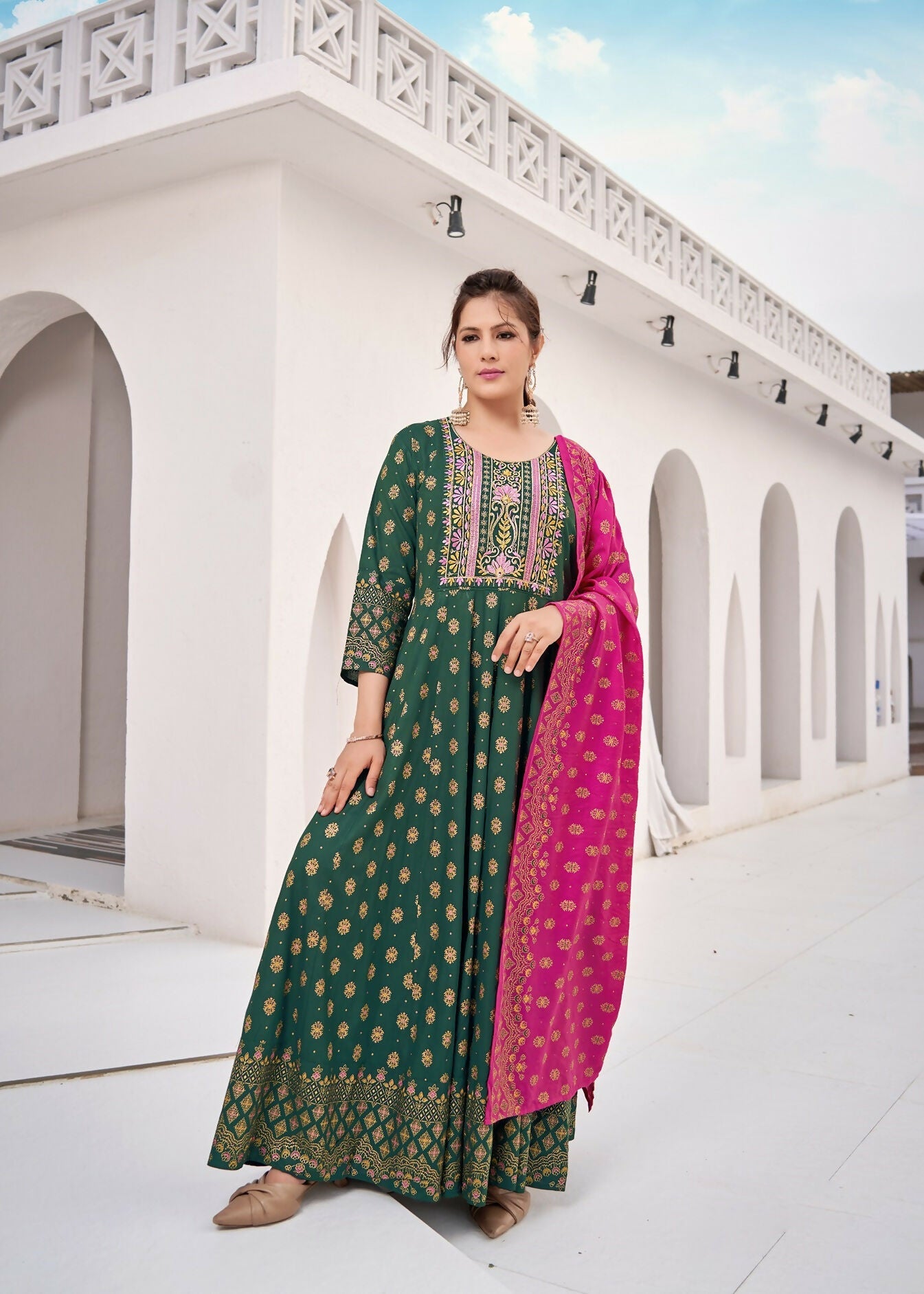 Aastha Fashion Green Rayon Party Wear Designer Gown Collection