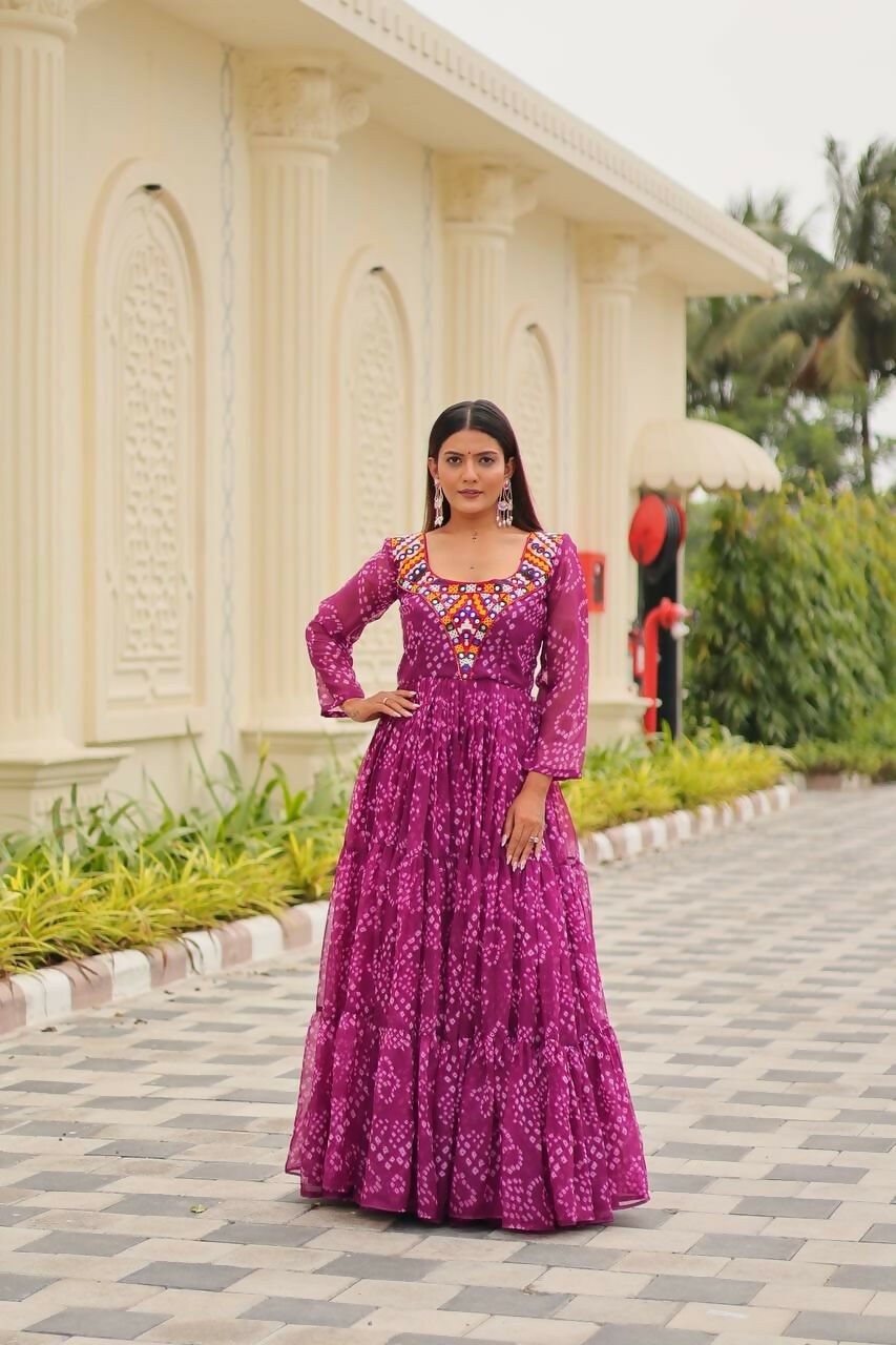 Aastha Fashion Magenta Faux Georgette Navratri Designer Gown Collection