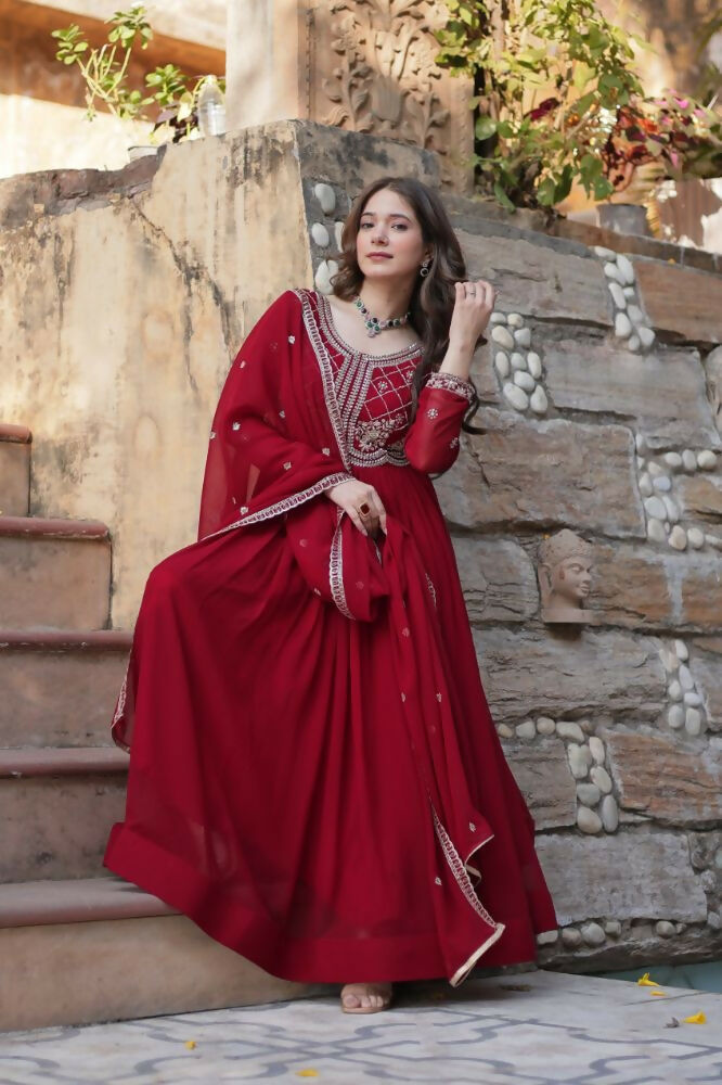 Aastha Fashion Maroon Faux Blooming Sequins-Multi & Beads Embroidered Work Party Wear Designer Gown