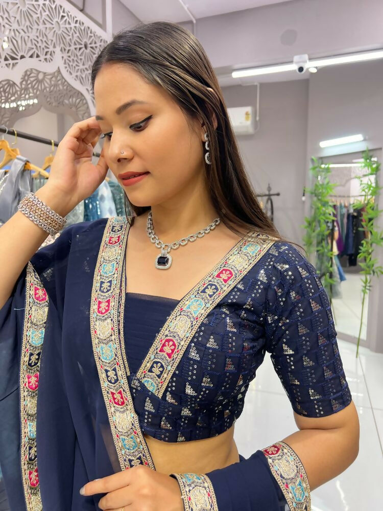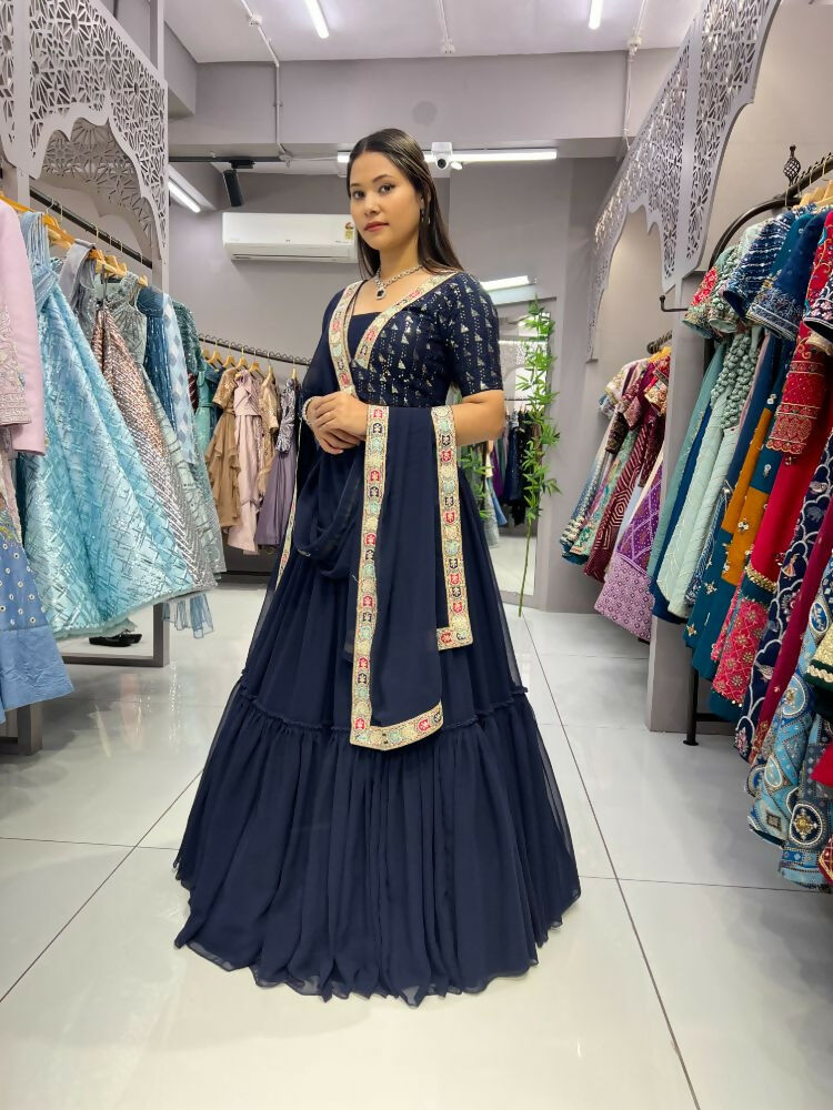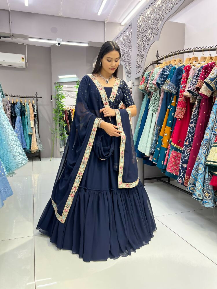 Aastha Fashion Navy Blue Heavy Georgette Pleated Semi Stitched Wedding Wear Lehenga Choli
