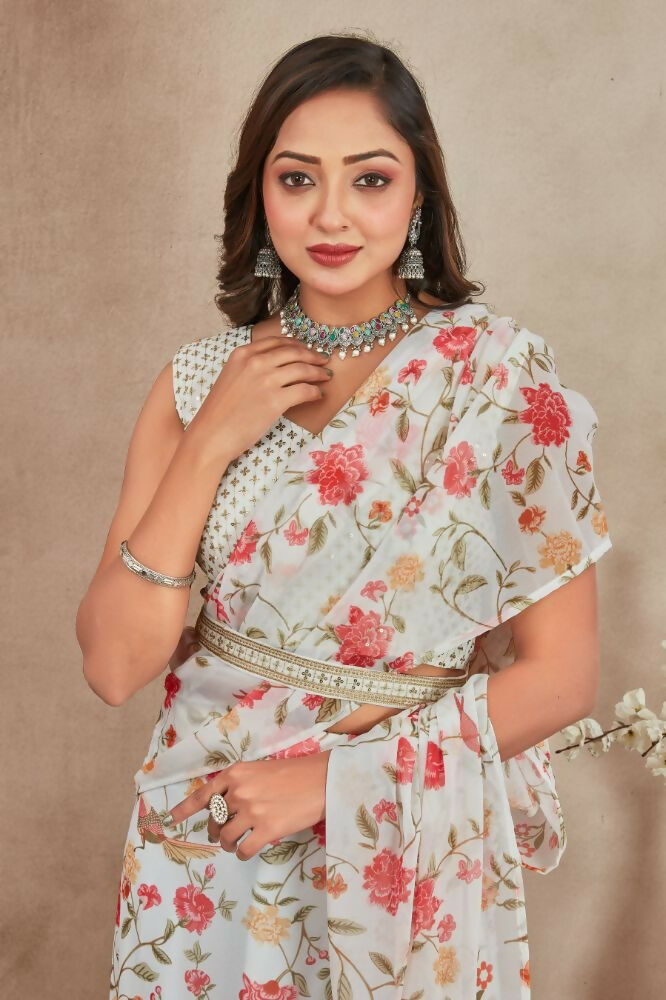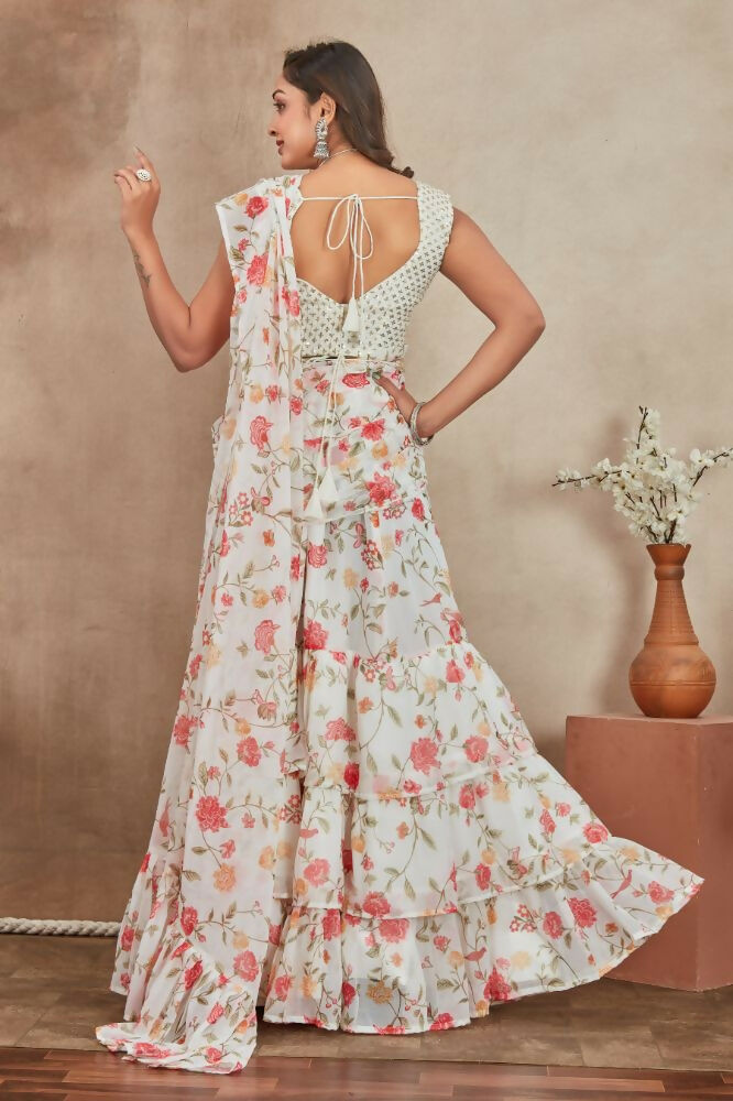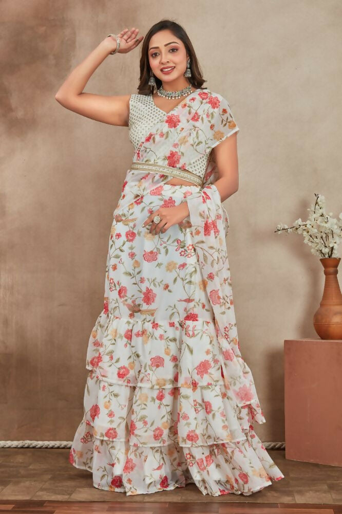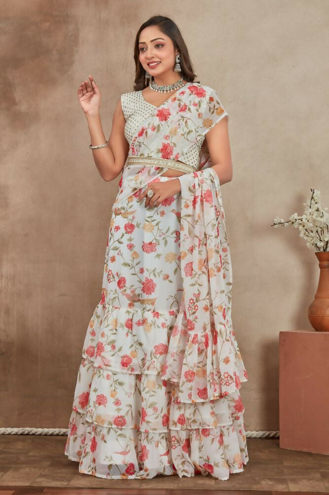 Aastha Fashion Off White Heavy Georgette Heavy Digital Print Semi Stitched Wedding Wear Lehenga Choli