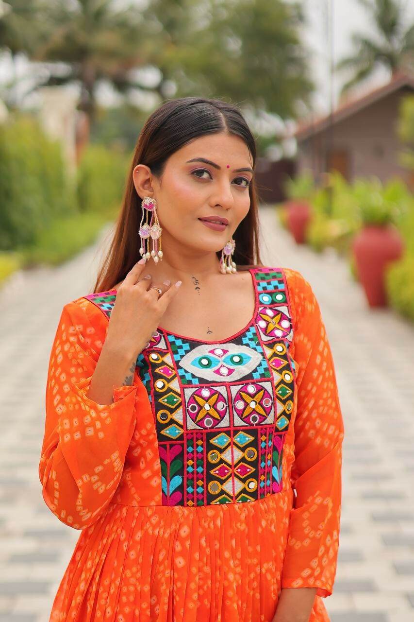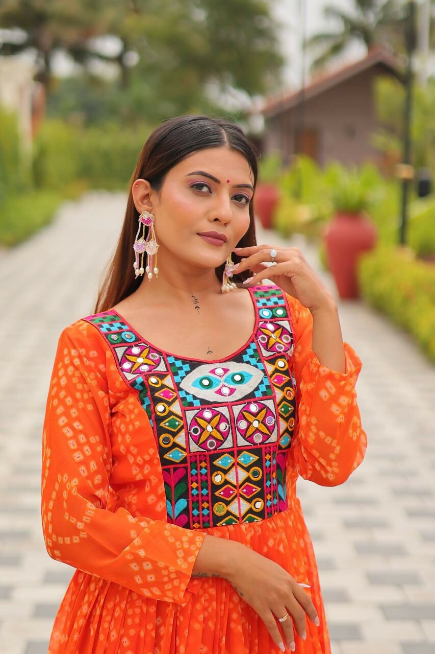 Aastha Fashion Orange Faux Georgette Navratri Designer Gown Collection