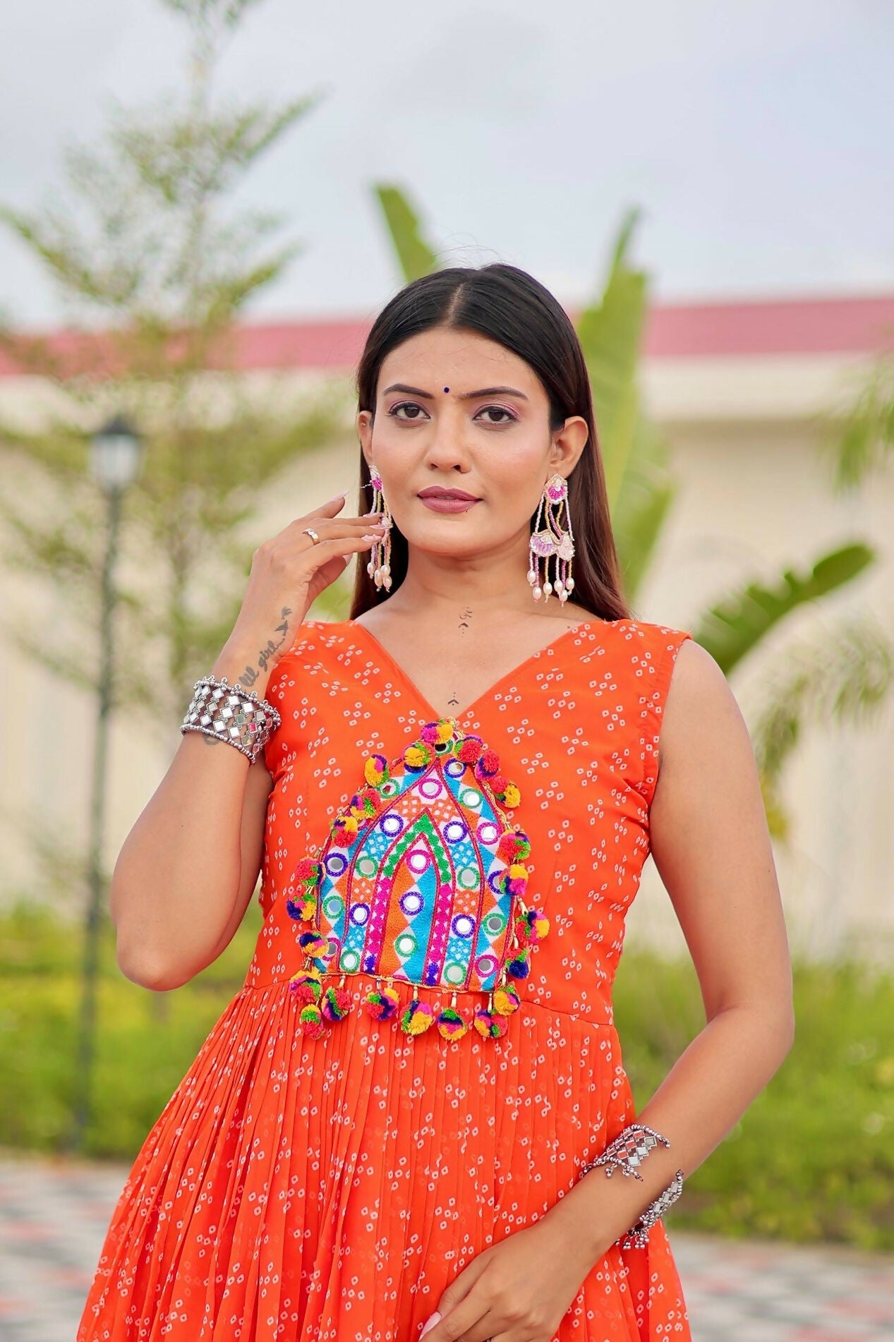 Aastha Fashion Orange Faux Georgette Party Wear Designer Gown Collection