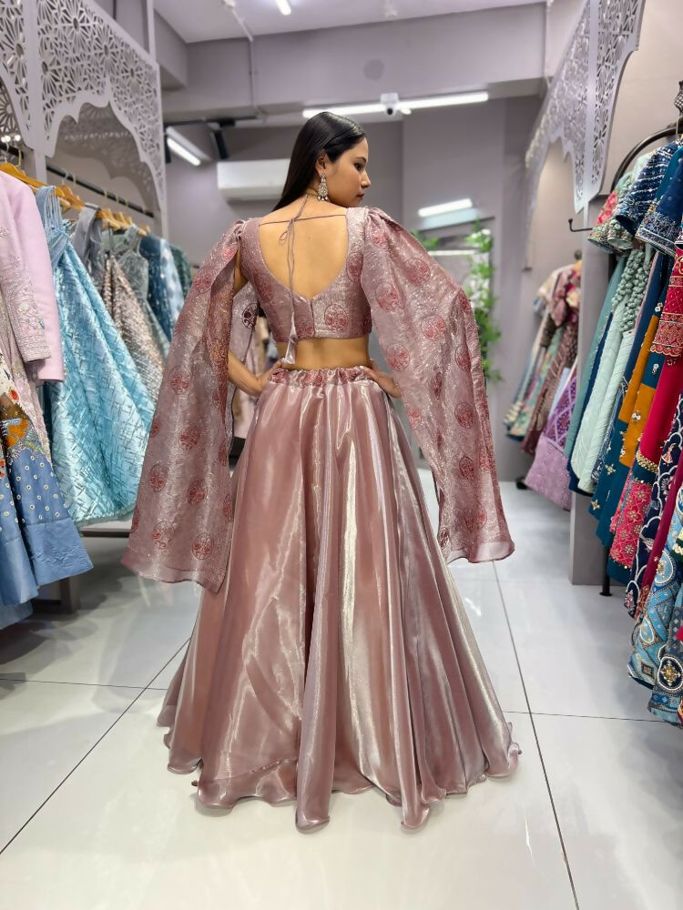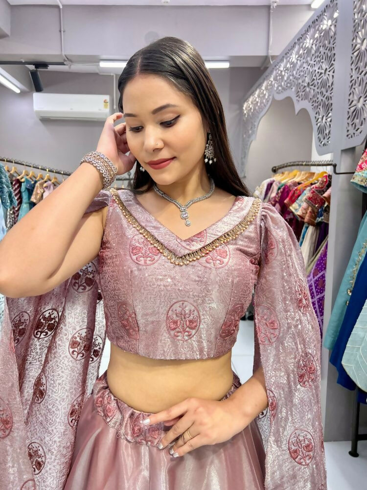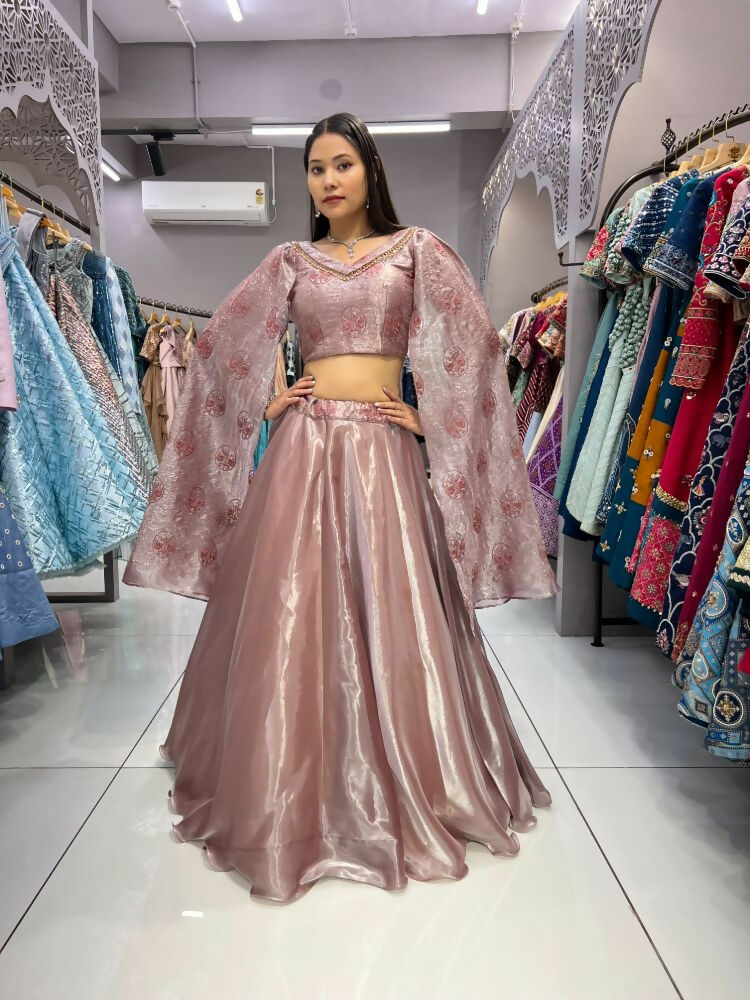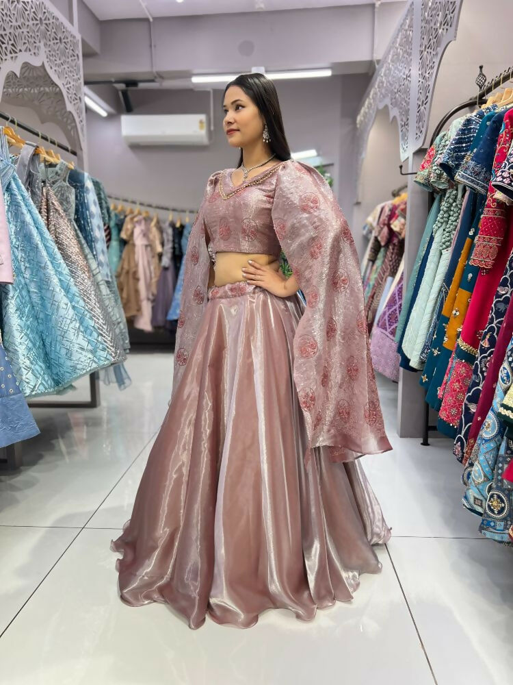 Aastha Fashion Peach Heavy Jimmy Chu Belt Embroidery Thread + Sequence Work Semi Stitched Wedding Wear Lehenga Choli