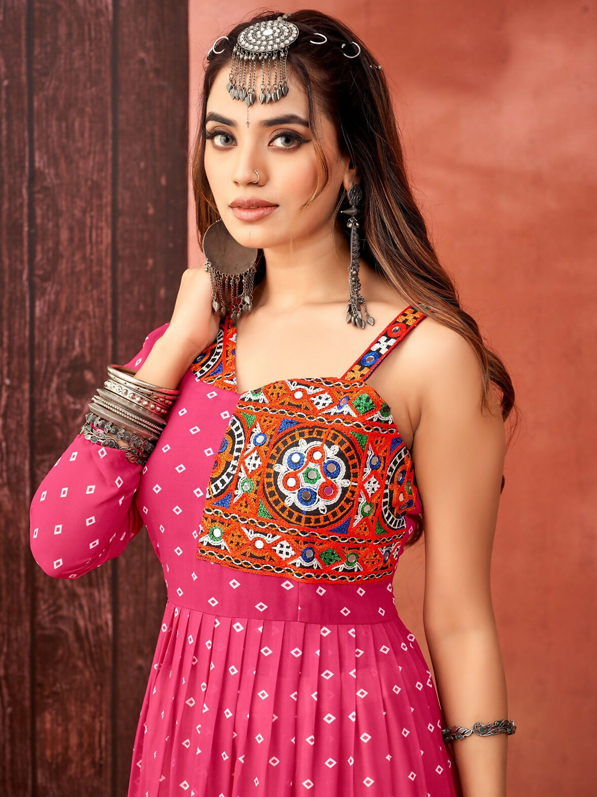 Aastha Fashion Pink Faux Blooming Georgette Glamorous Festival Wear Designer Navratri Gown Collection