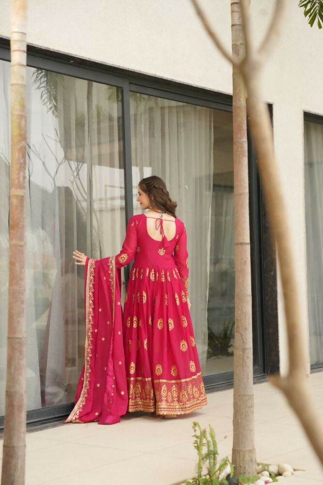Aastha Fashion Pink Star Georgette Embroidery Zari Sequins-work Party Wear Designer Gown