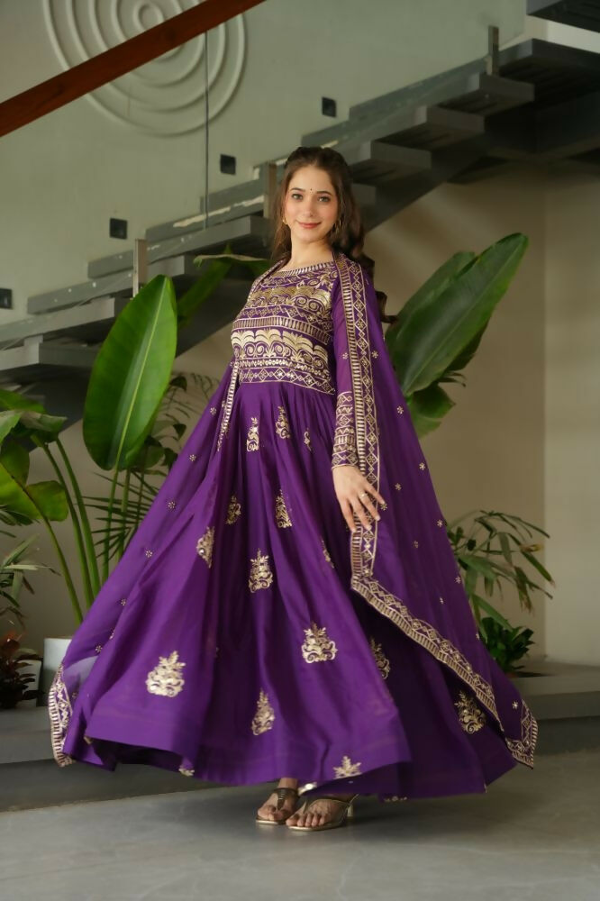 Aastha Fashion Purple Chinnon Sequins-Multi & Beads Embroidered Work Party Wear Designer Gown