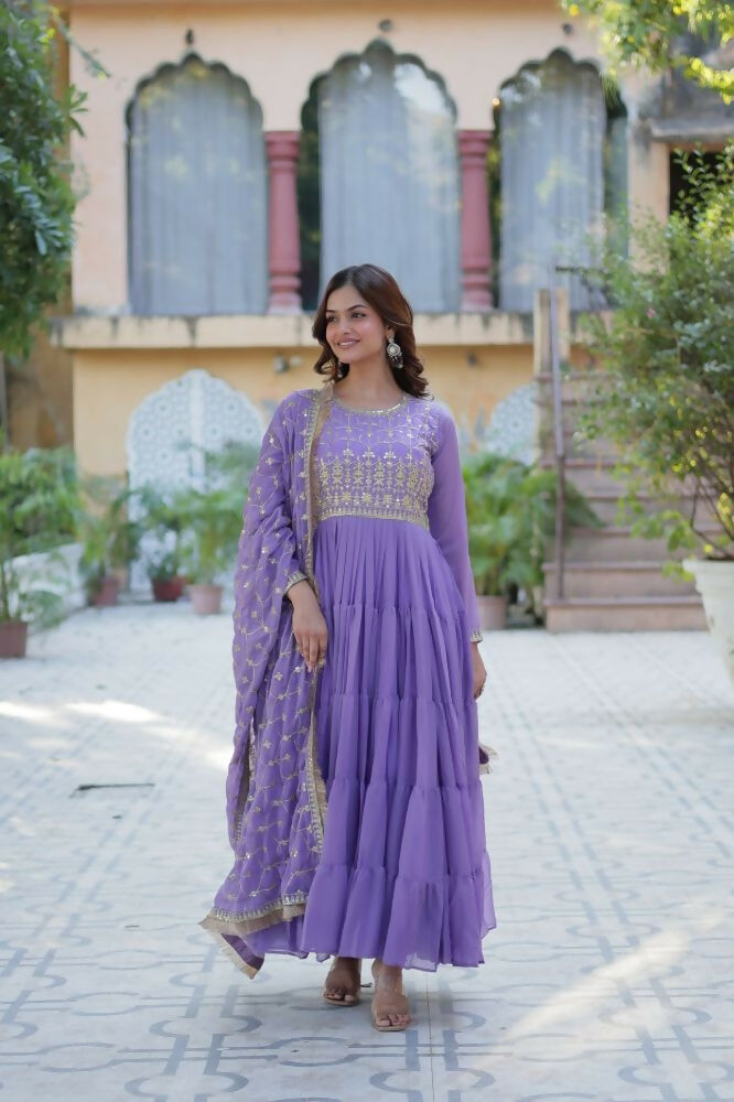 Aastha Fashion Purple Star Georgette Embroidery Party Wear Designer Gown