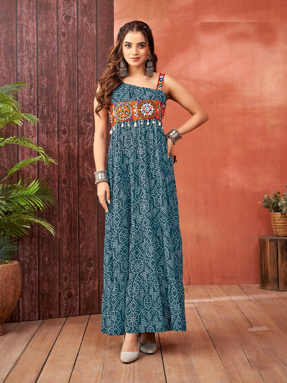 Aastha Fashion Rama Faux Blooming Georgette Glamorous Festival Wear Designer Navratri Gown Collection