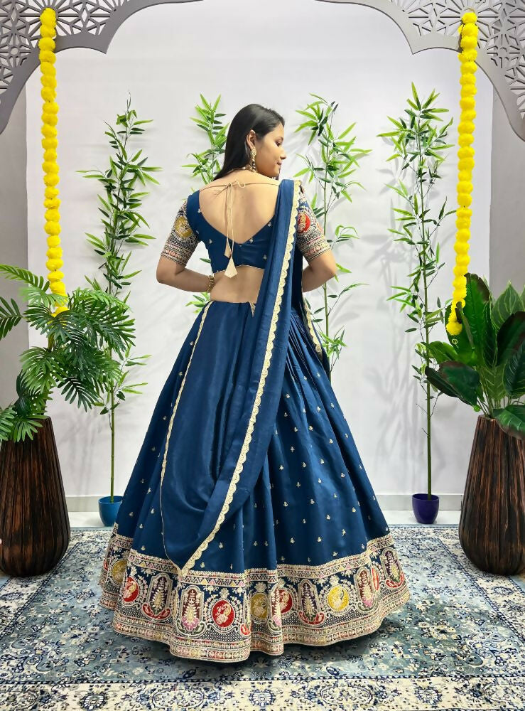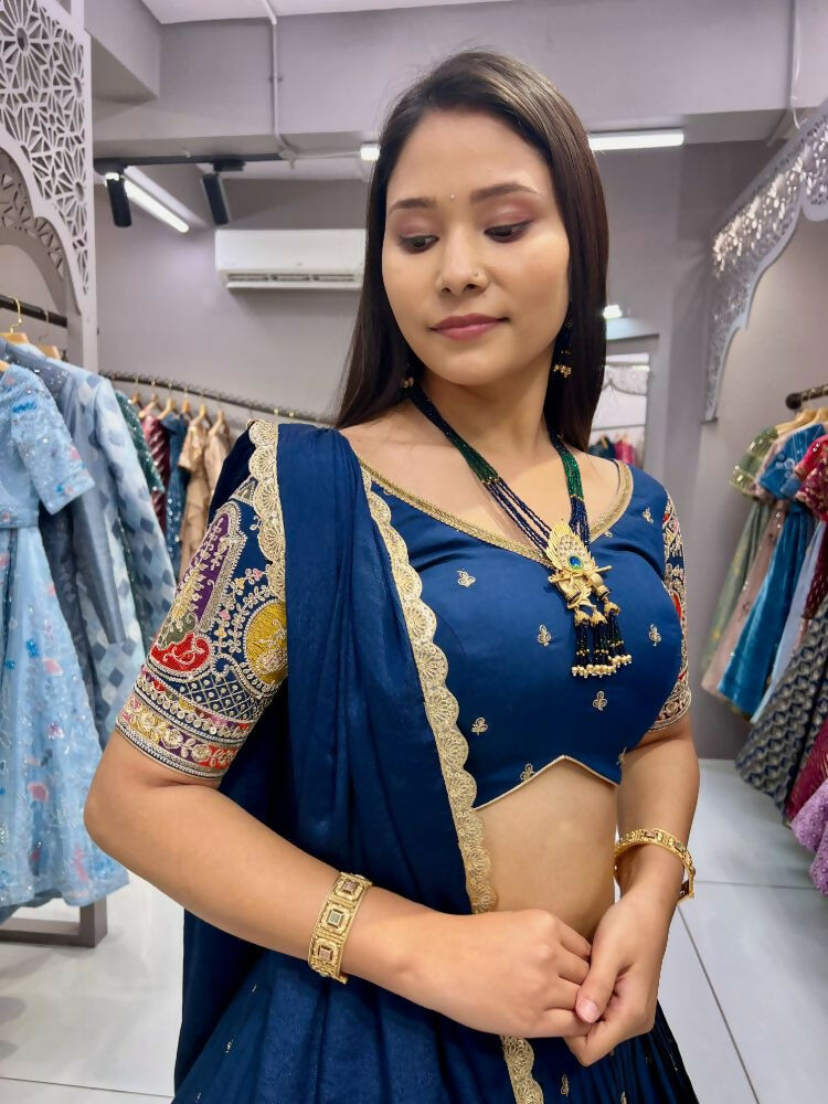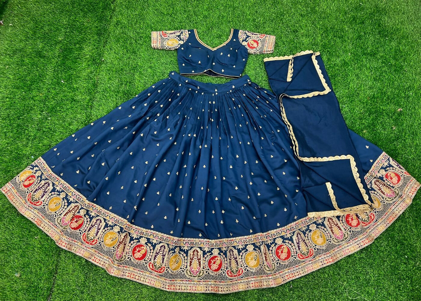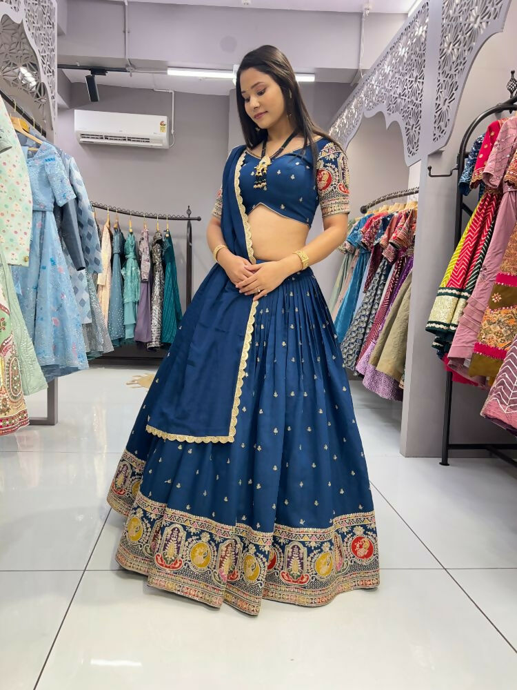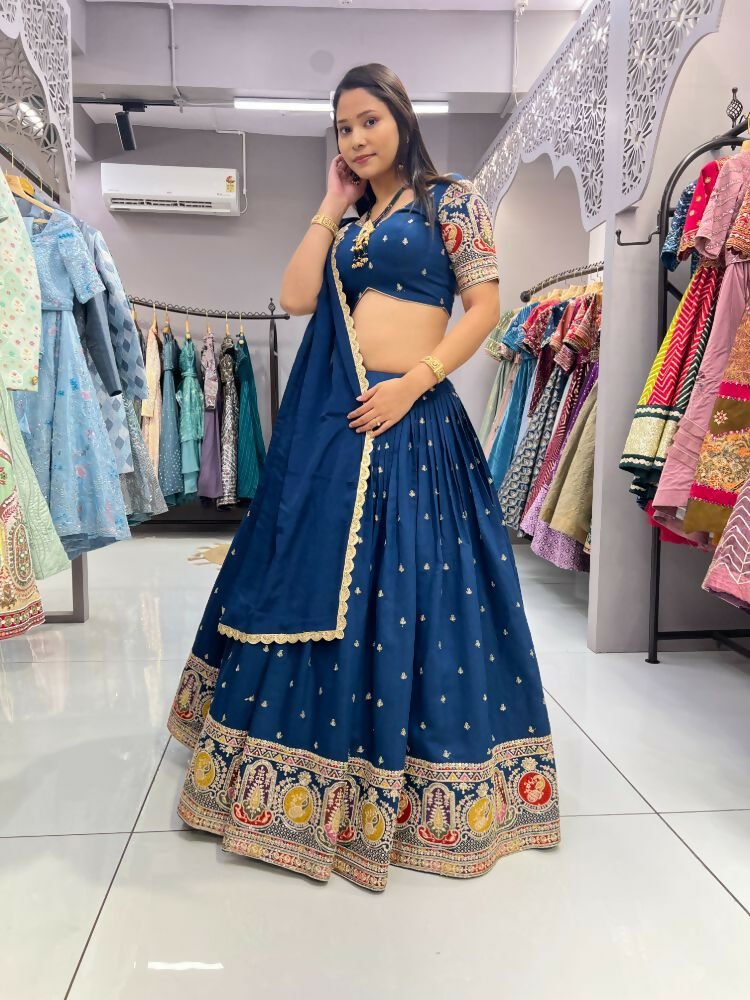 Aastha Fashion Rama Roman Silk Embroidery Thread / Zari / Sequence Work Semi Stitched Wedding Wear Lehenga Choli