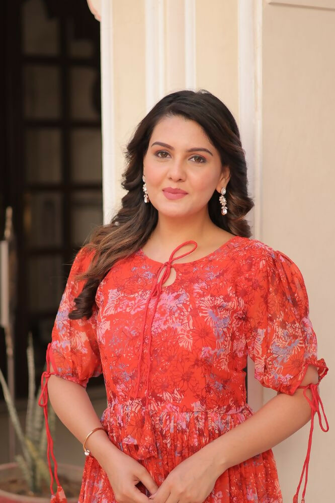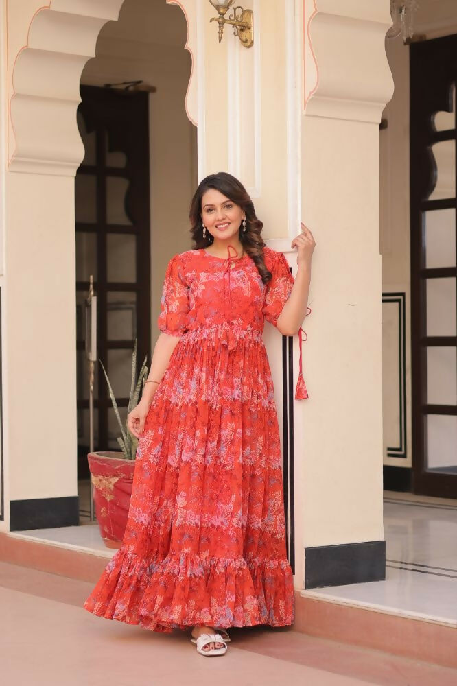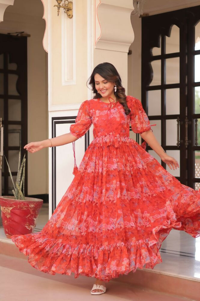Aastha Fashion Red Faux Georgette Printed Party Wear Designer Gown