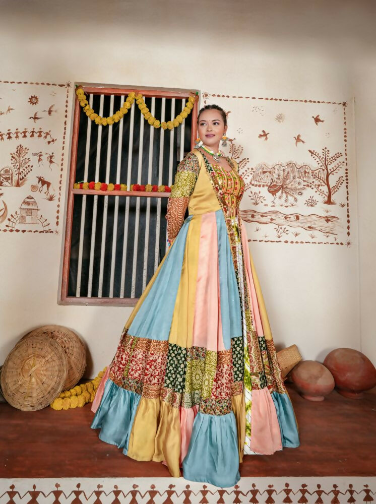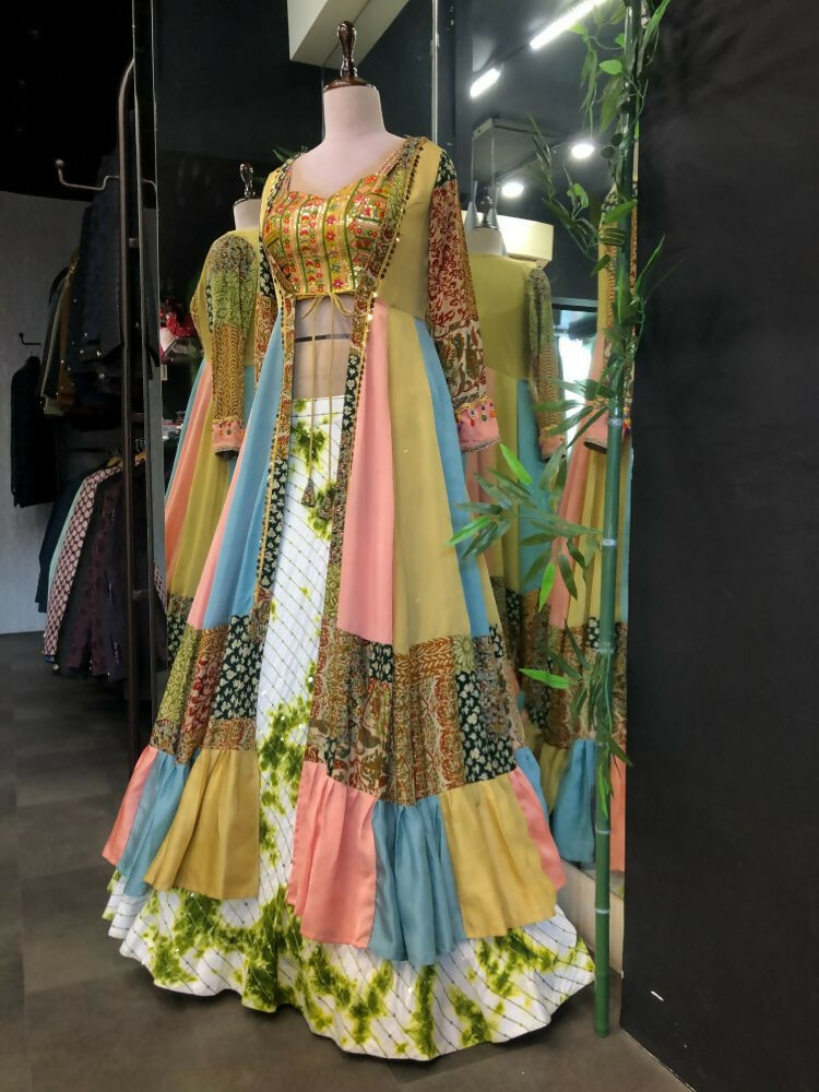 Aastha Fashion White Heavy Rayon Cotton Heavy Embroidery + Sequence Work Semi Stitched Wedding Wear Lehenga Choli