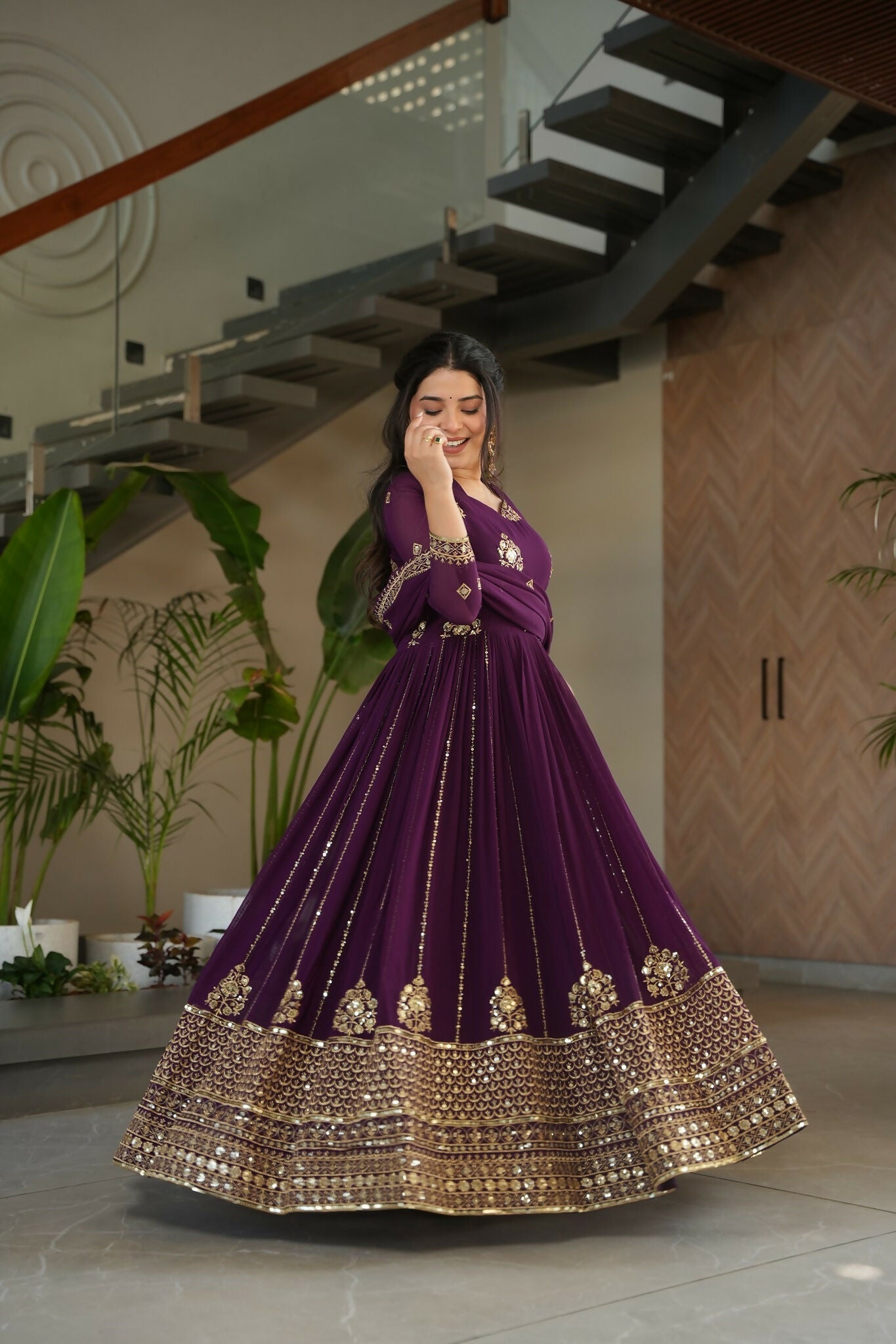Aastha Fashion Wine Faux Blooming Party Wear Designer Gown Collection