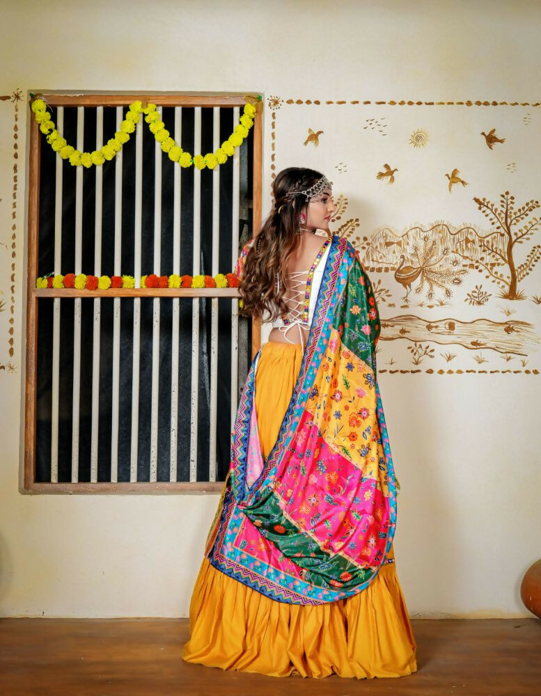 Aastha Fashion Yellow Rayon Ready Mirror Lace Semi Stitched Wedding Wear Lehenga Choli