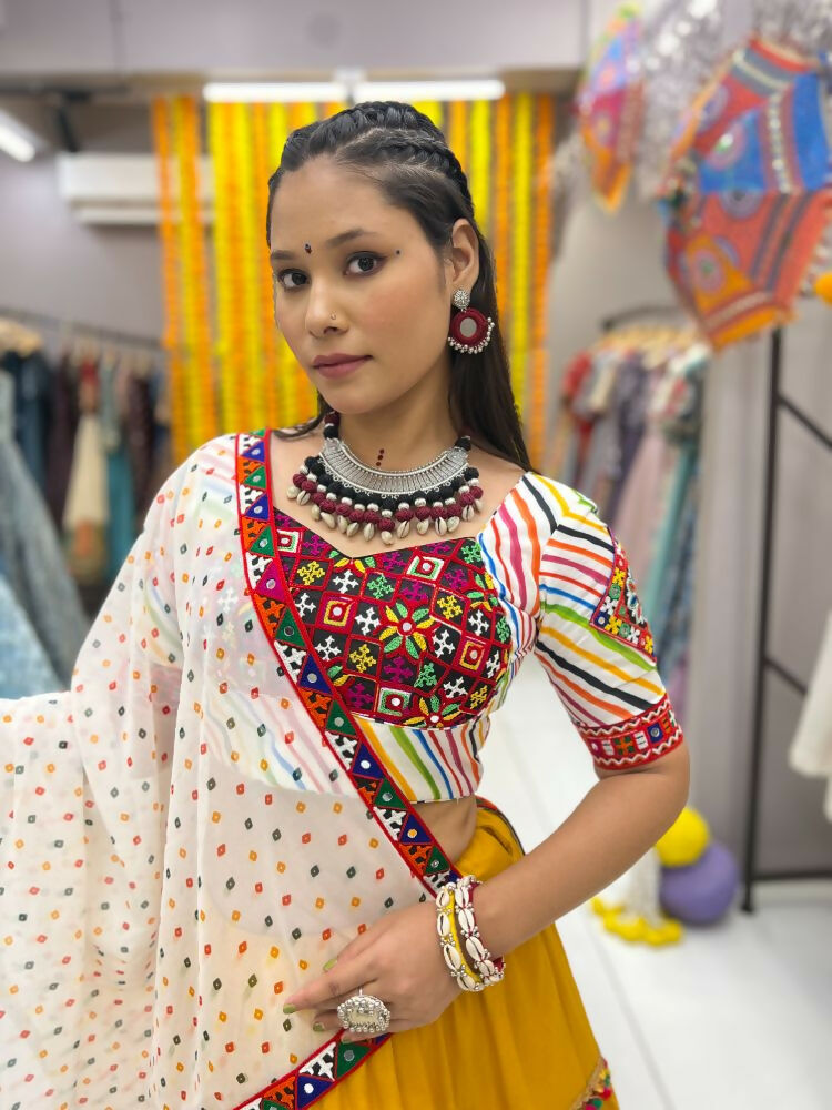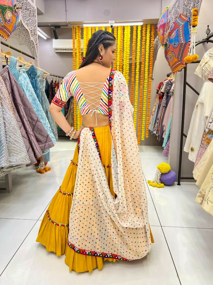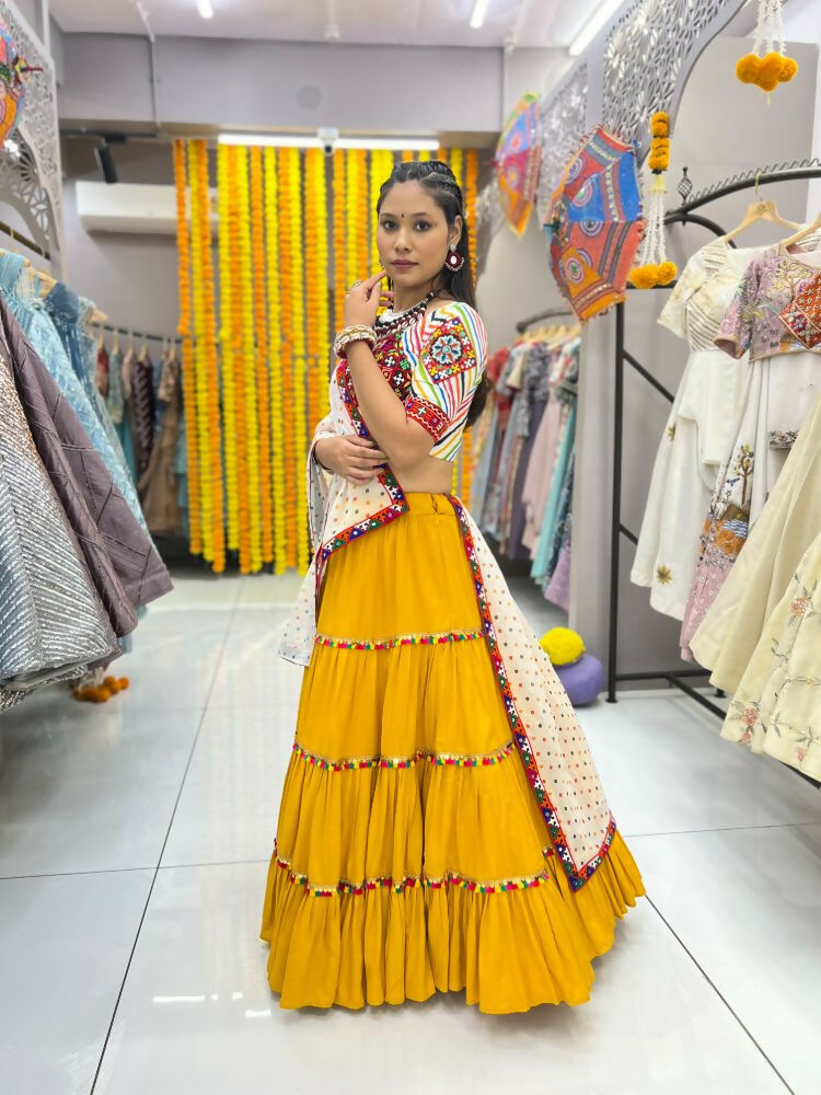 Aastha Fashion Yellow Rayon Readymade Lace Semi Stitched Wedding Wear Lehenga Choli
