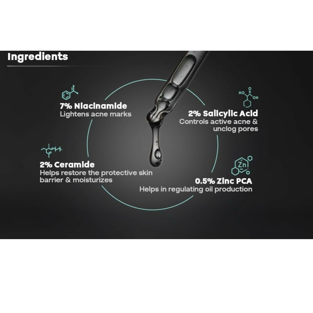 Anti Acne Clear Skin Serum India’s First INCI Beauty 18.5/20 Total 22% of Actives Co-Developed with Dermatologist | Skin Barrier Support | Fades Acne Marks Fights Active Acne Controls Oil Production 7% Niacinamide + 2% Salicylic Acid + 2% Ceramide + 0.5% Zinc PCA