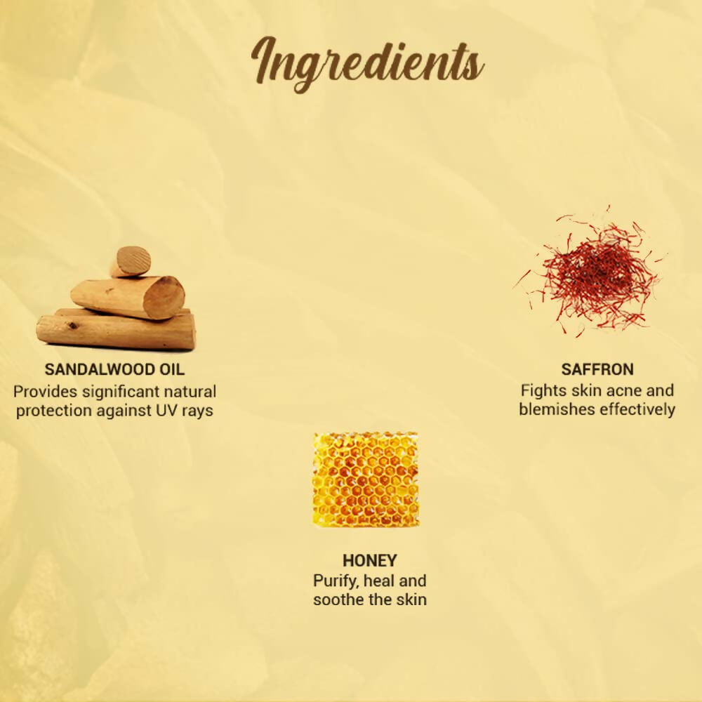 - Sandalwood comes from the sandal tree, native to India, and used throughout the ages for its pampering and protecting properties. This nutrient-rich lotion is blended with pure sandalwood, saffron, wheat germ, honey and bark of the arjun tree to keep skin soft, fair and moisturized. Also contains naturally derived zinc oxide. Protects skin with broad spectrum SPF 50 UVA/UVB sunscreen. Very water resistant, retains SPF after 80 minutes in the water.