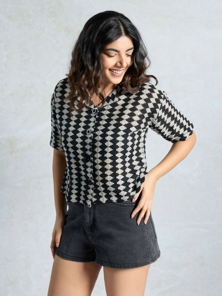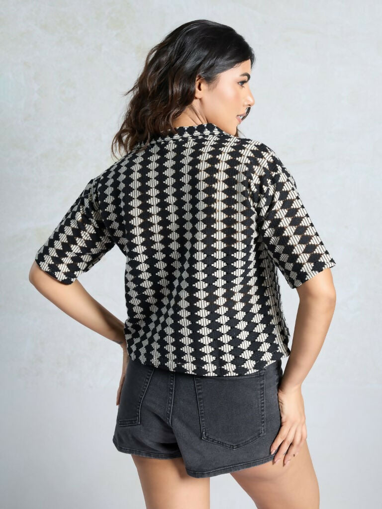 Black Knited Wevon Designer Shirt - Hiral Fashion