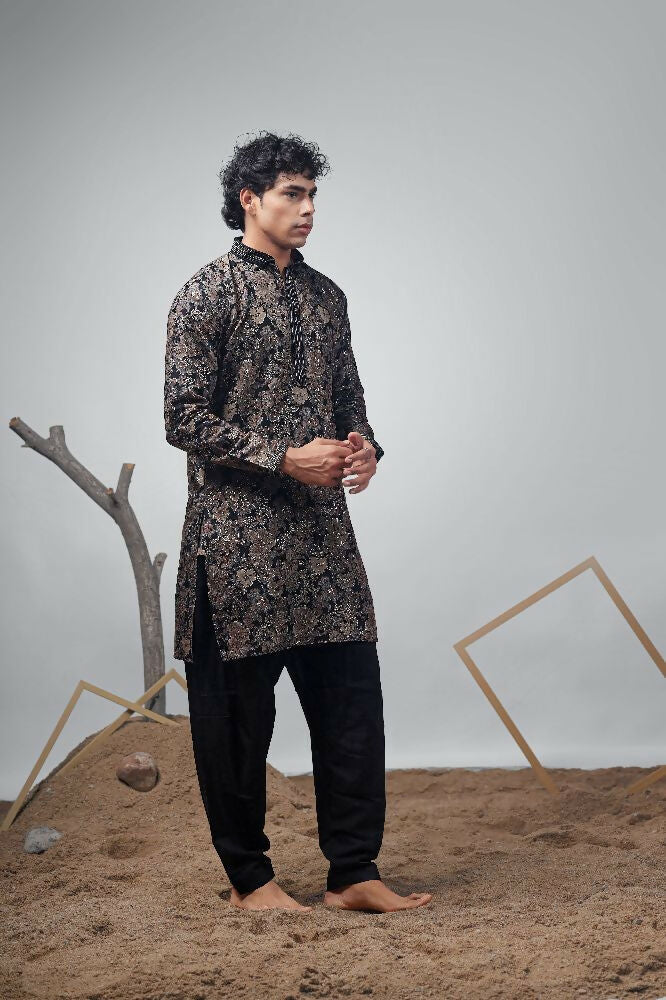 Black Modal Designer Printed Kurta Set - Mahotsav