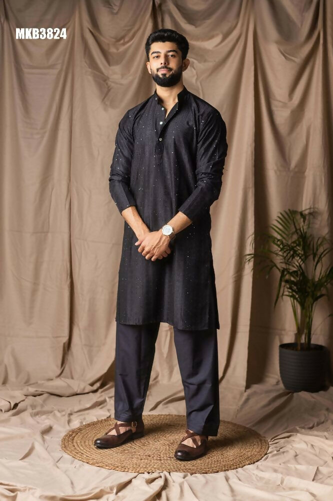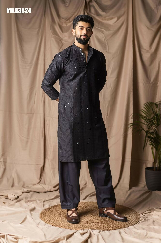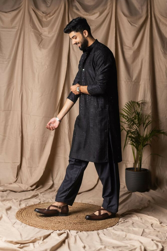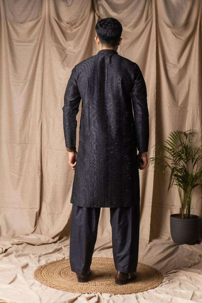 Black Rayon Thread Embroidery Work Kurta Set - Mahotsav