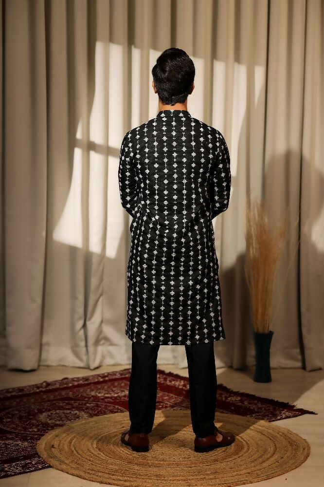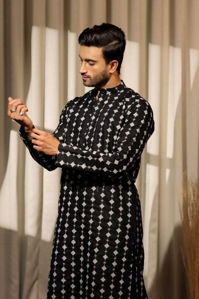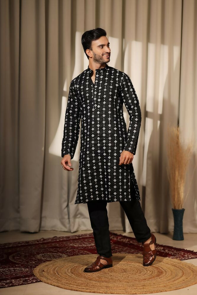 Black Viscose Designer Embroidery Work Kurta Set - Mahotsav