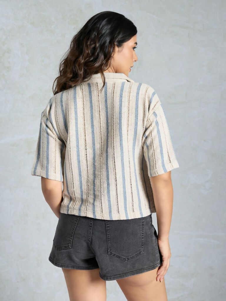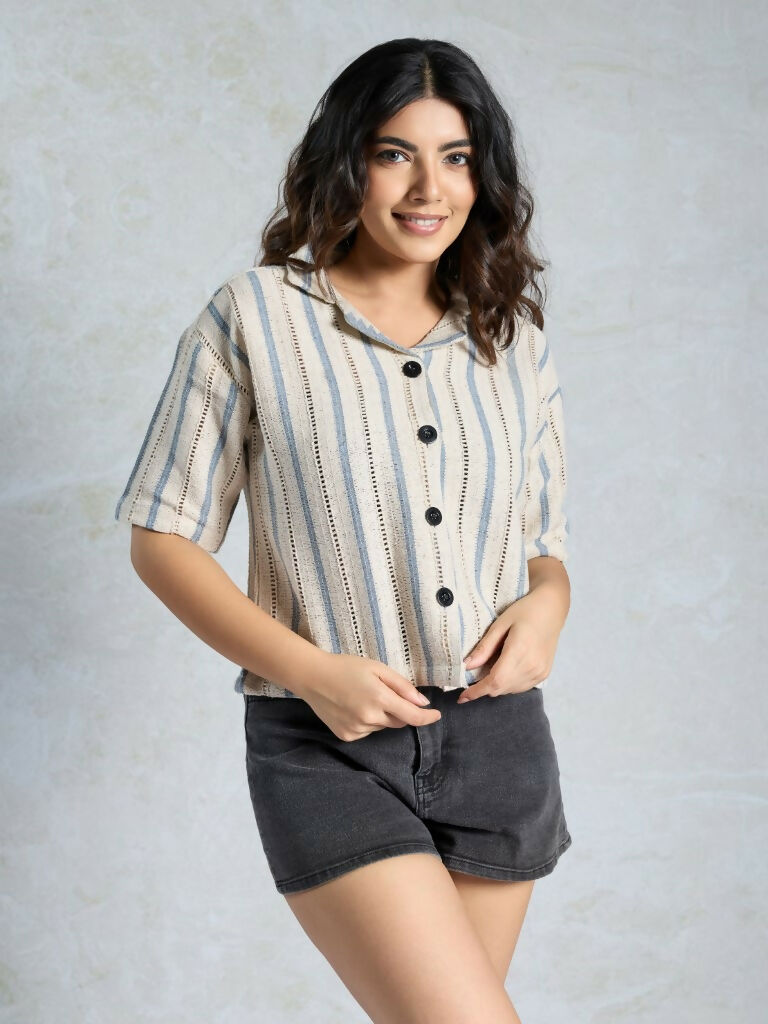 Blue Knited Wevon Designer Shirt - Hiral Fashion