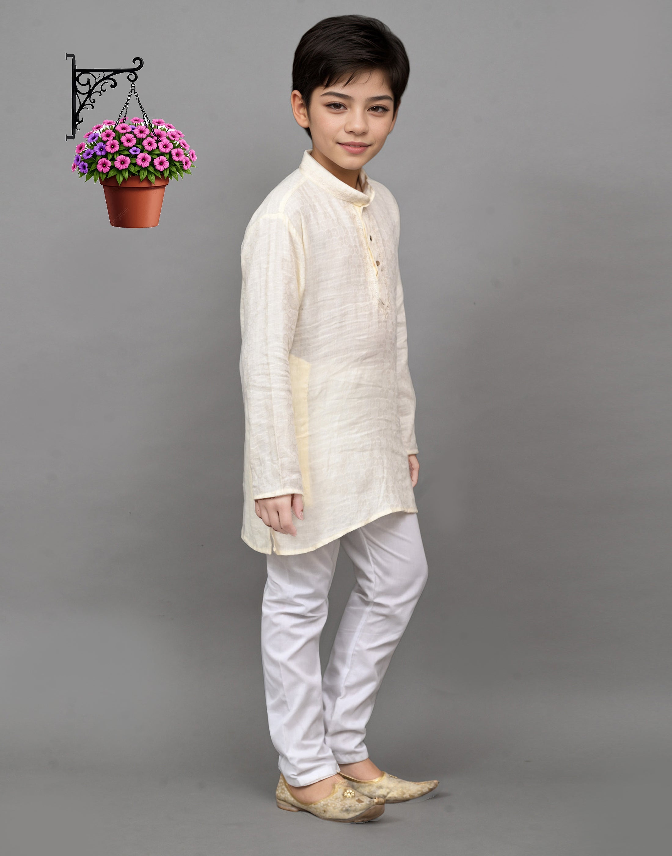 Bluesaanchi White Self-Design Embroidered Kurta Set – Timeless & Sophisticated for Your Little One