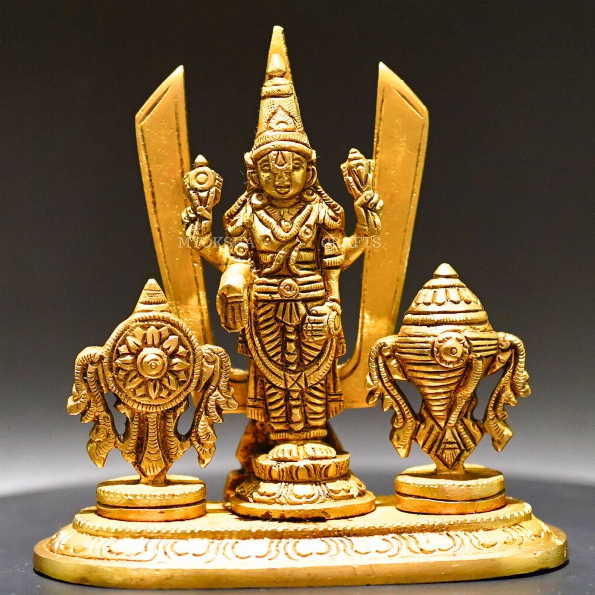 Crafted from premium quality brass, this Balaji with Shankchakra statue ensures durability and longevity, allowing you to cherish this divine artwork for years to come. Its perfect size and weight make it suitable for personal devotion and an exquisite gift for loved ones.