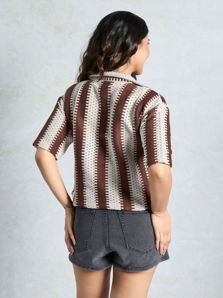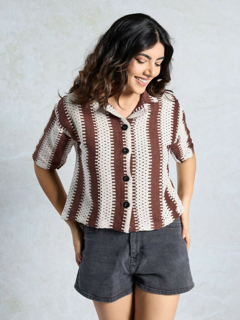 Brown Knited Wevon Designer Shirt - Hiral Fashion