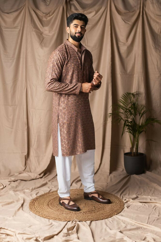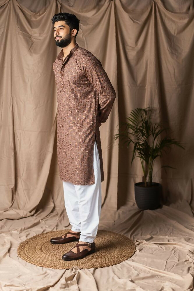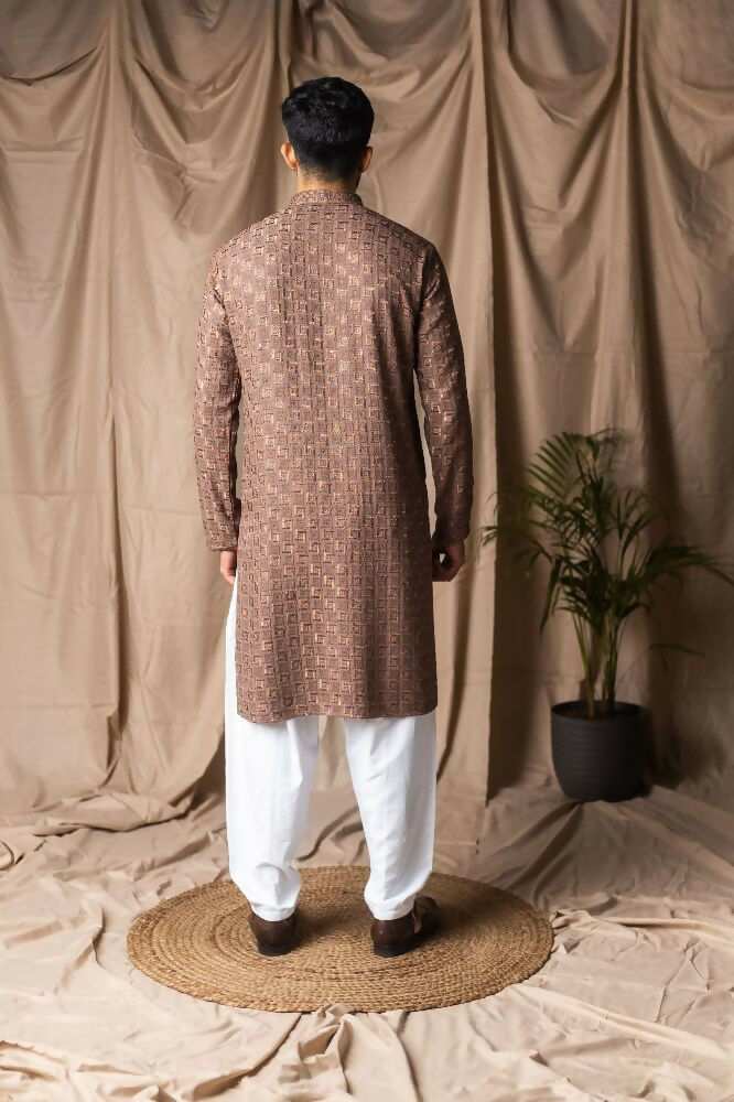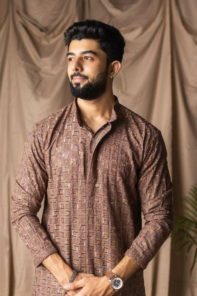 Brown Rayon Thread Embroidery Work Kurta Set - Mahotsav