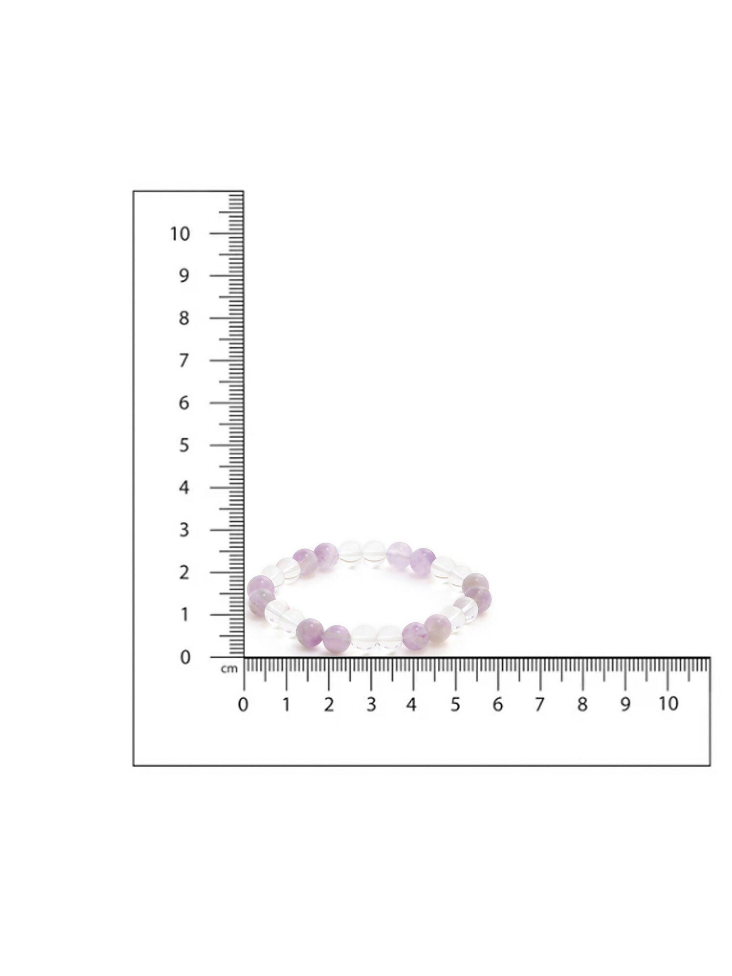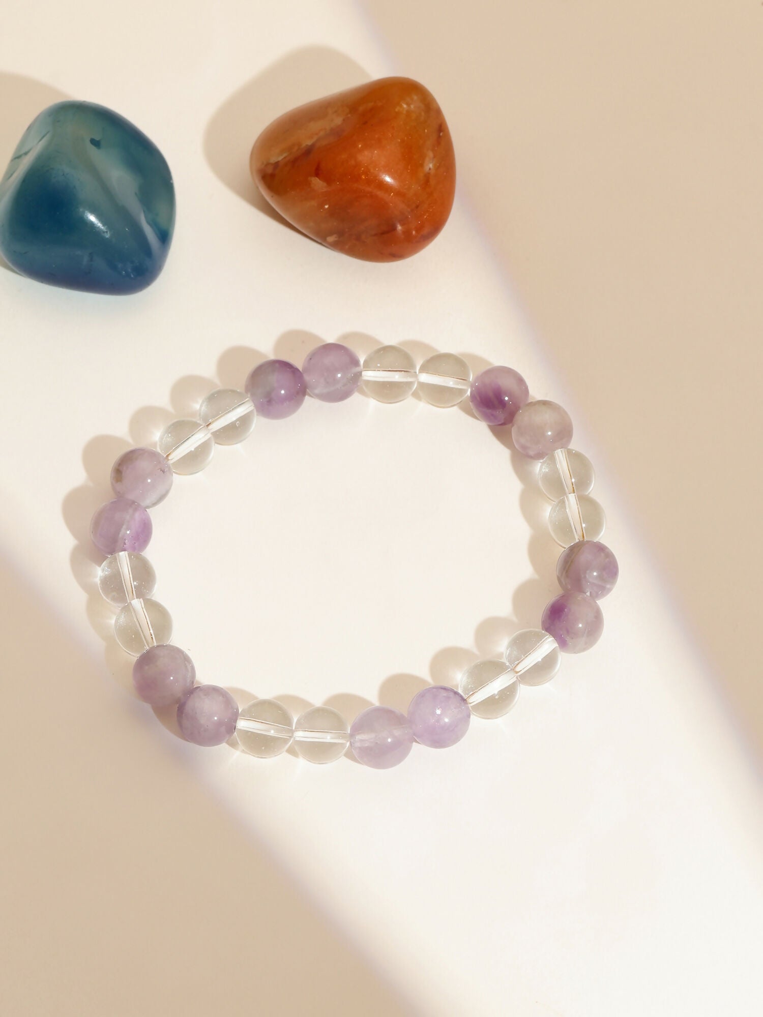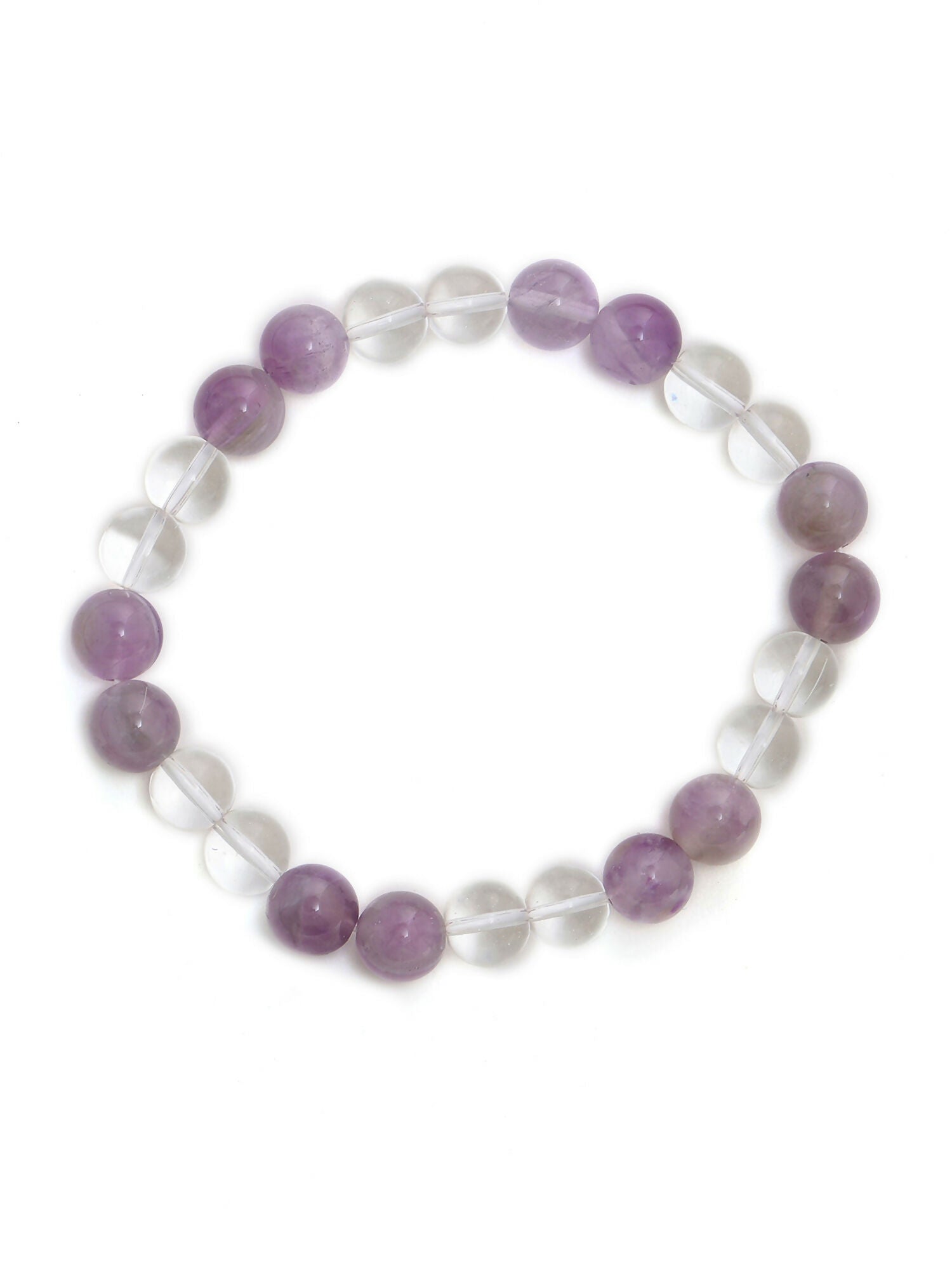Clear Quartz and Amethyst White and Grey Beads Elastic Bracelet - Ruby Raang