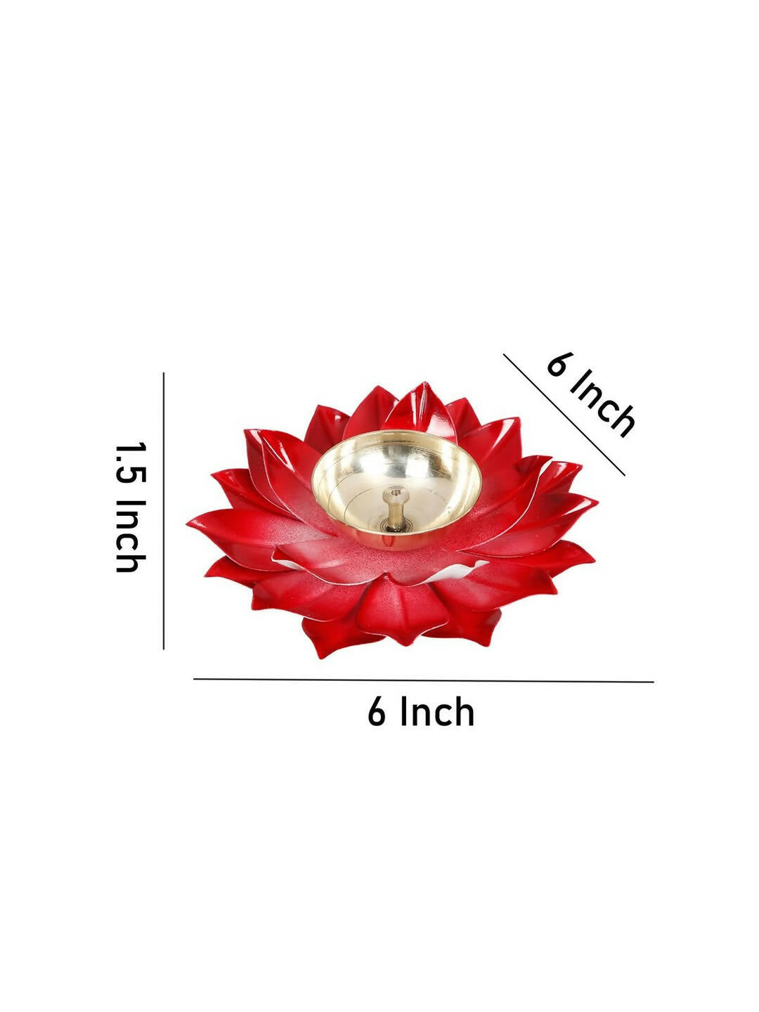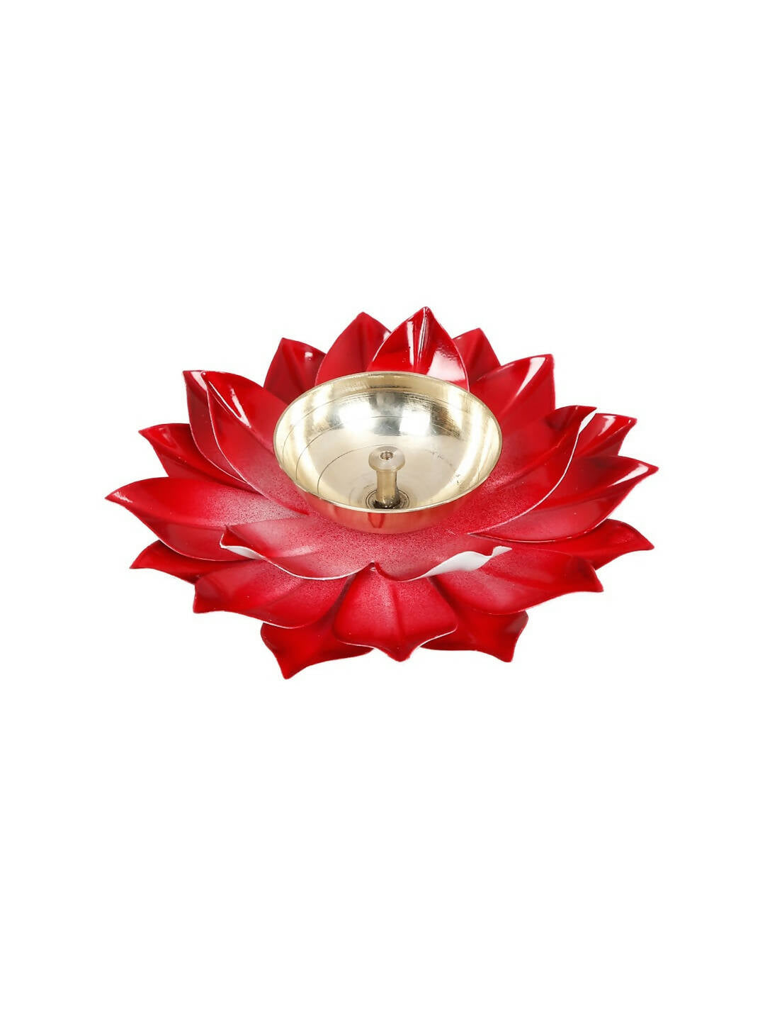 CraftVatika Red Lotus-Shaped Pooja Diya Oil Lamp