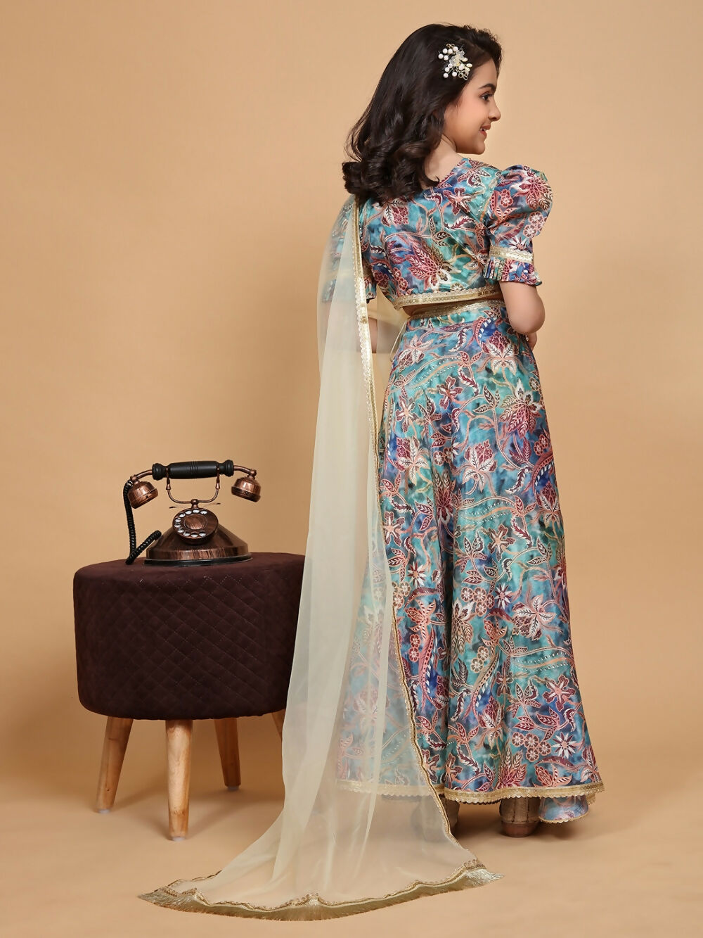 Divine Drape Girls Chinon Multi Printed Kids Lehenga Choli With Dupatta