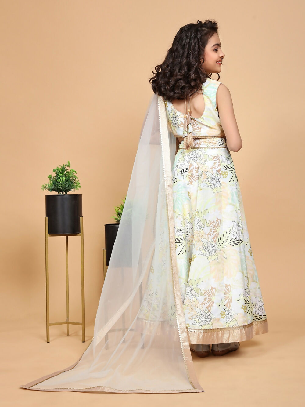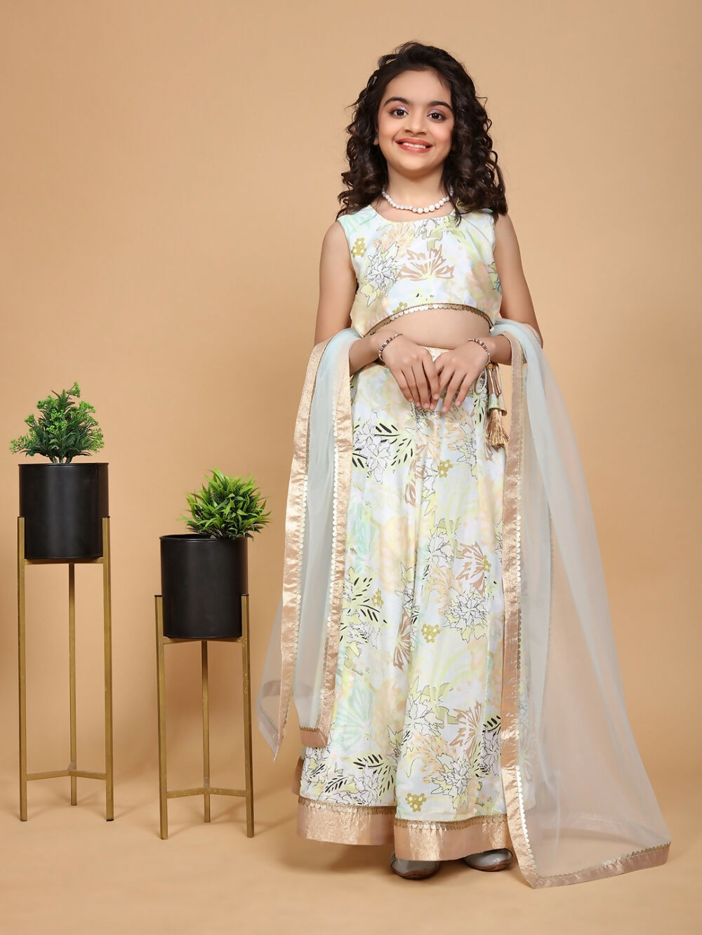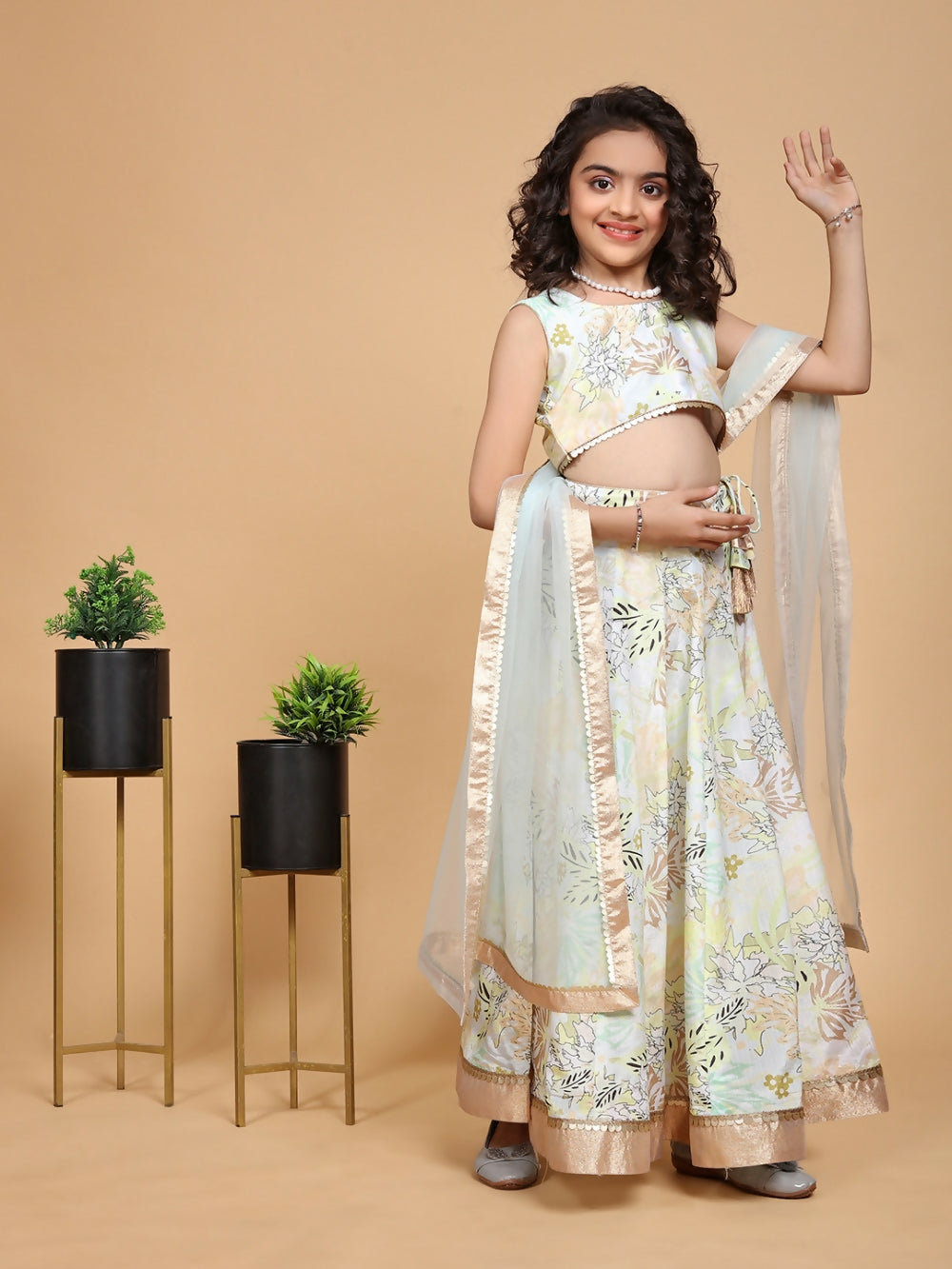Divine Drape Girls Chinon Pista Printed Kids Lehenga Choli With Dupatta