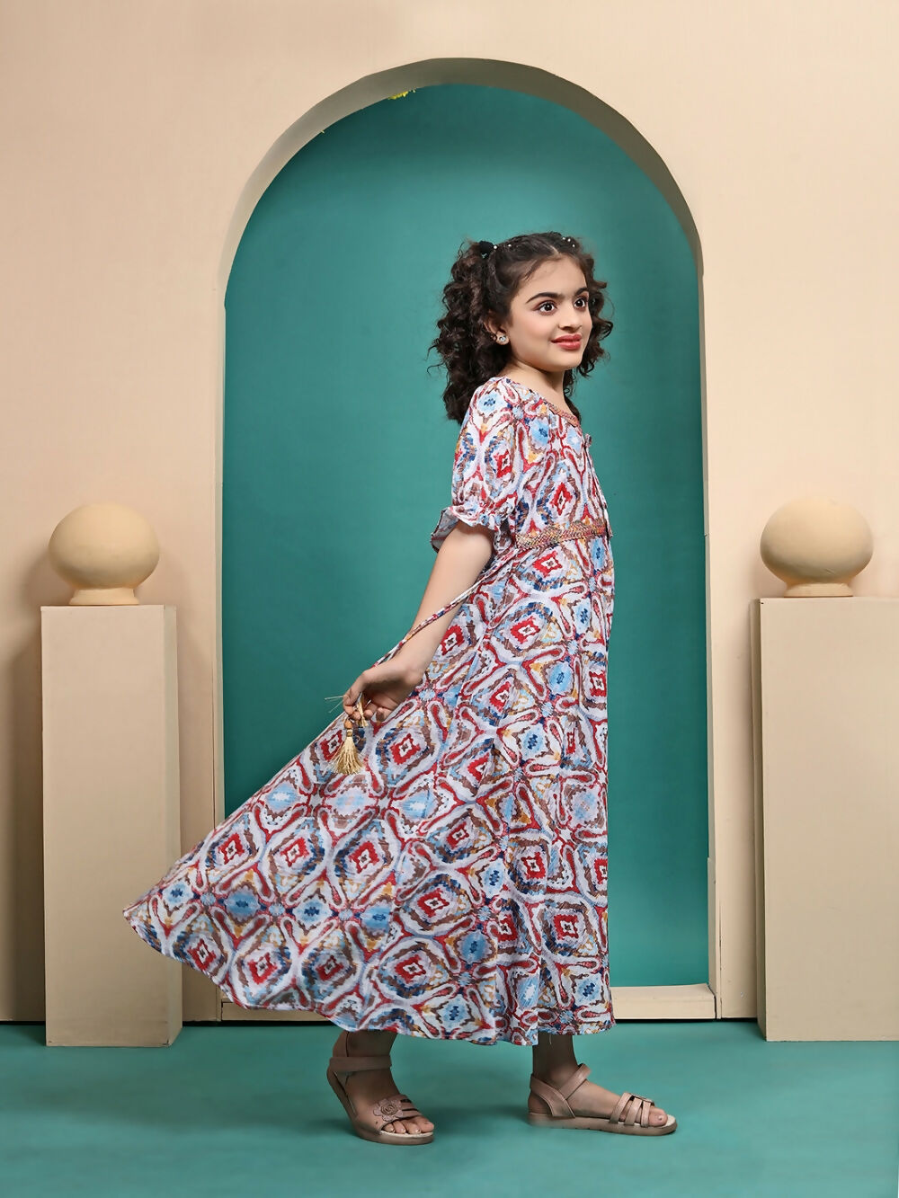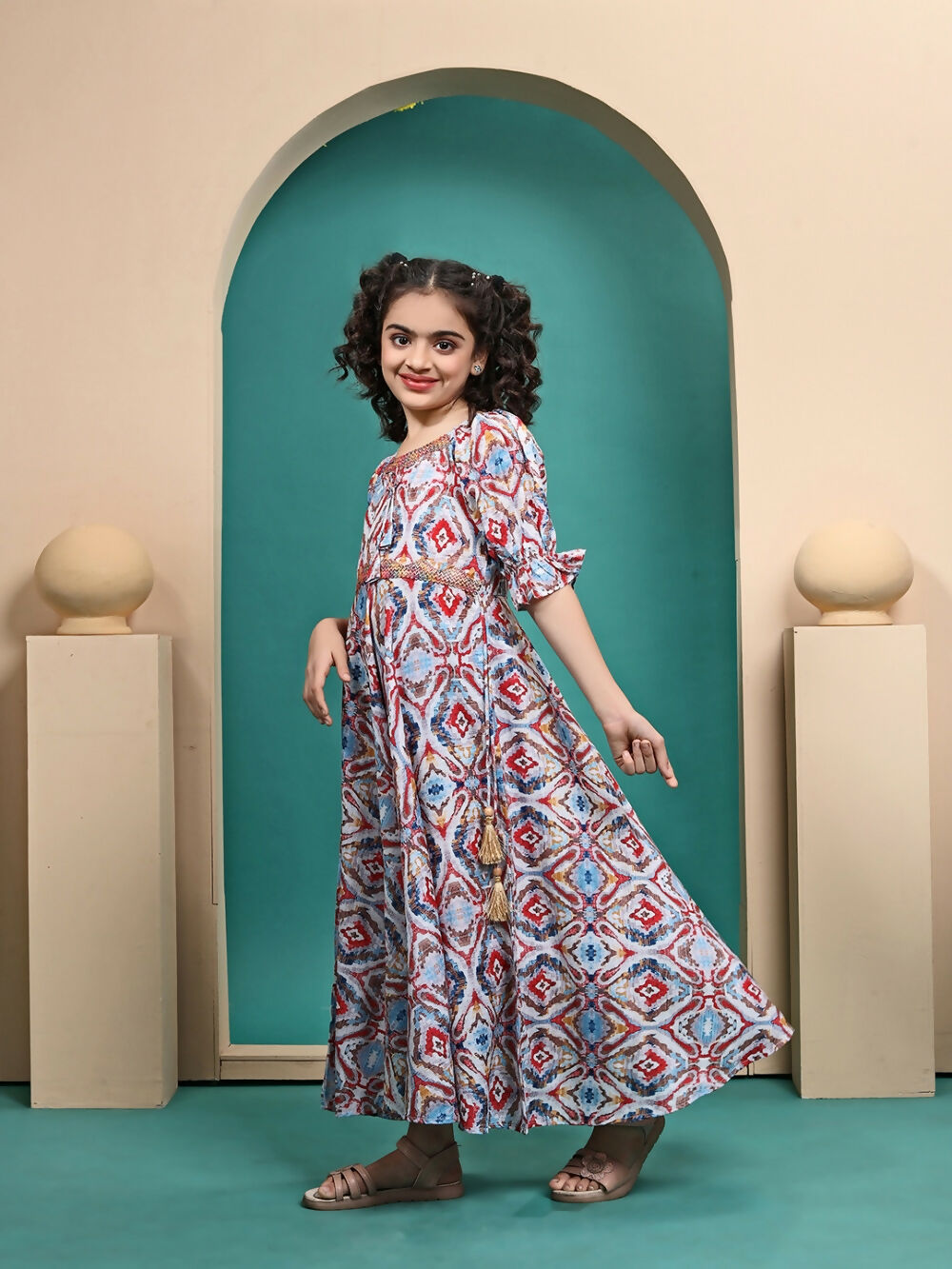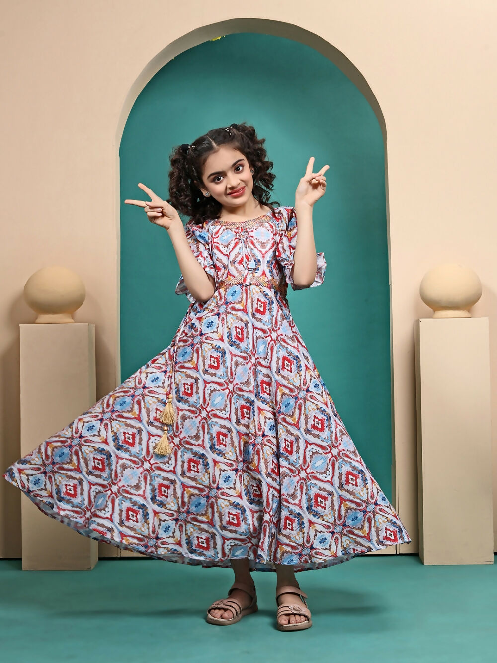 Divine Drape Girls Muslin MultiColour Printed Kids Anarkali Gown