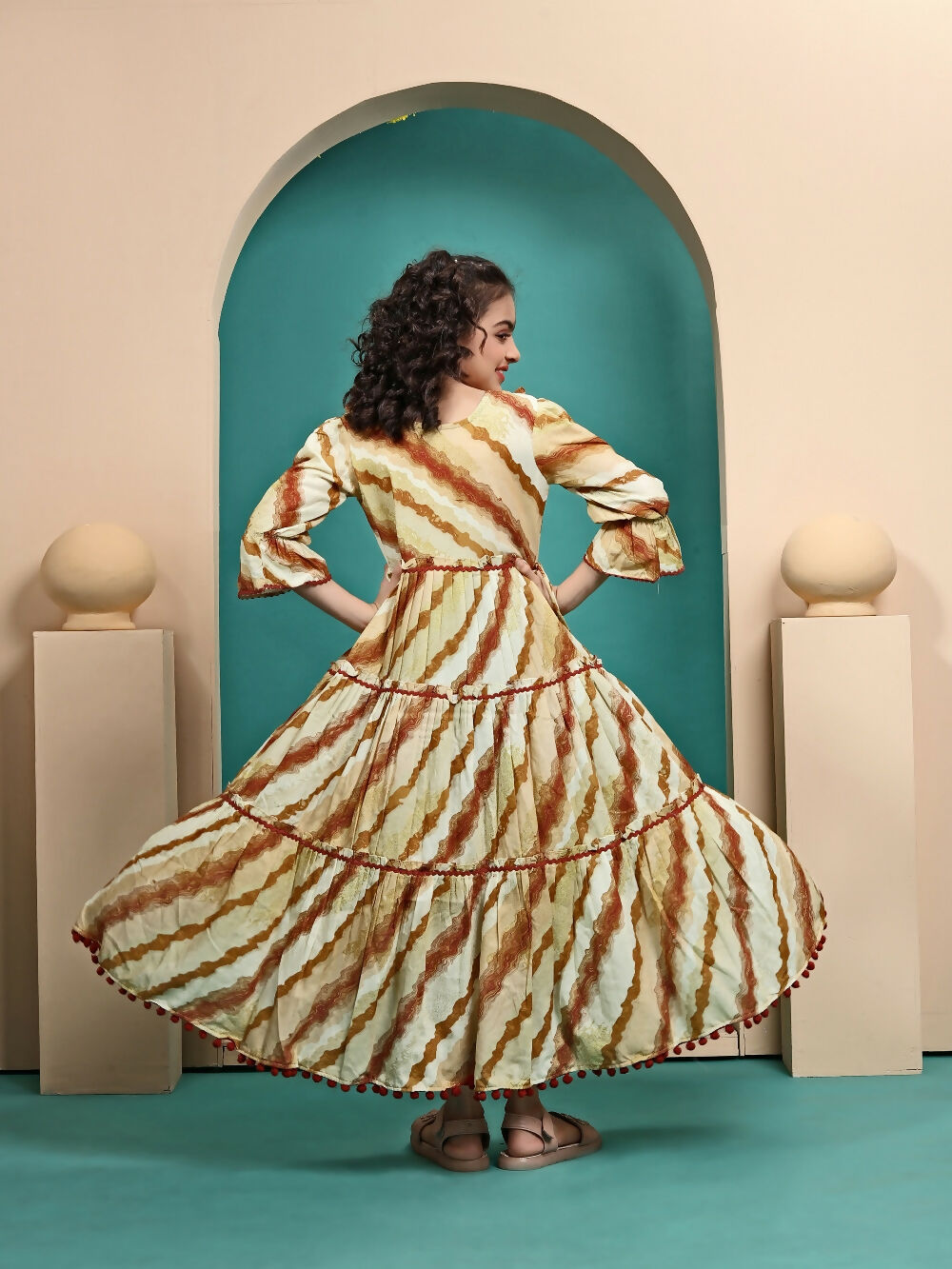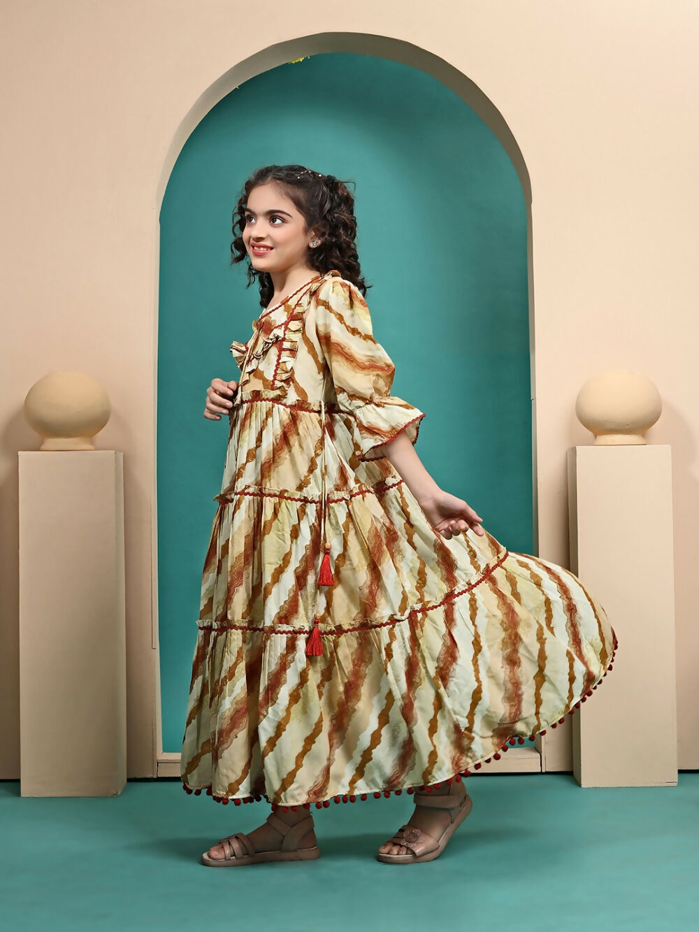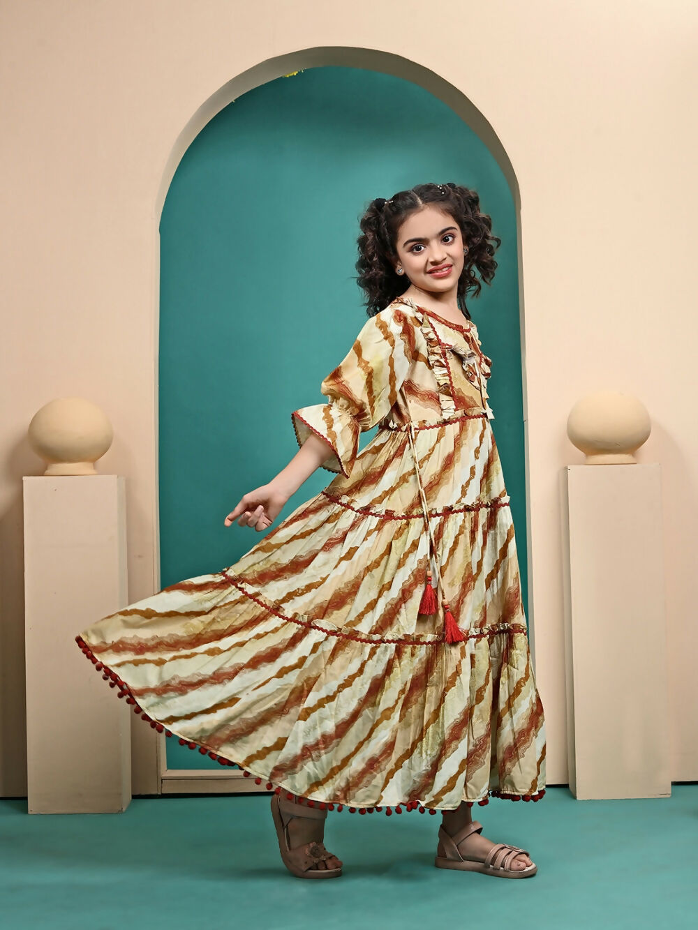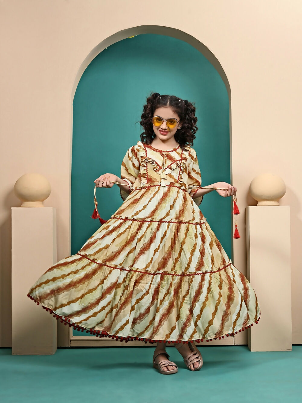 Divine Drape Girls Muslin Mustard Printed Kids Anarkali Gown