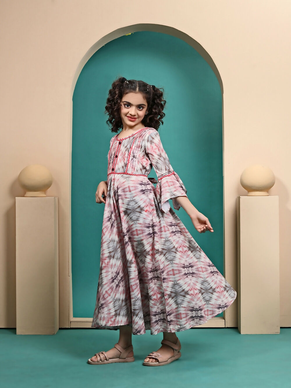 Divine Drape Girls Muslin Pink Printed Kids Anarkali Gown
