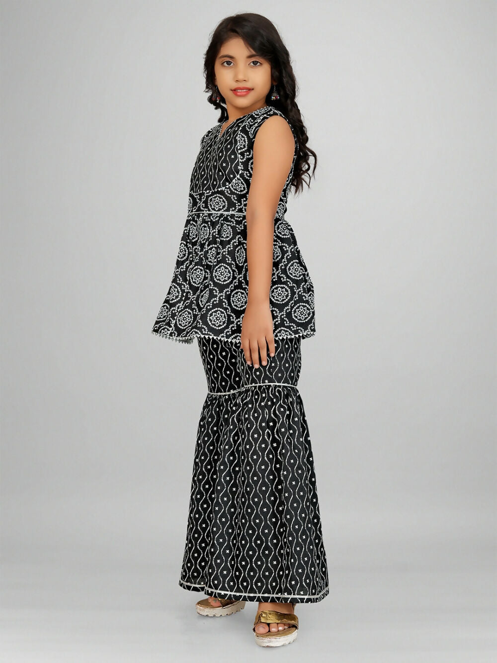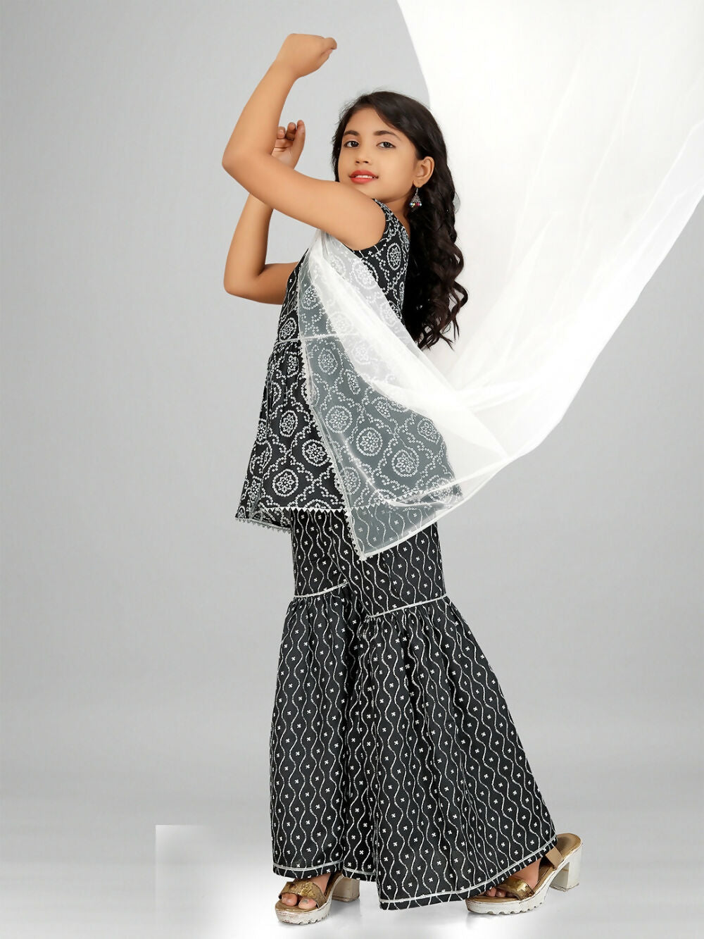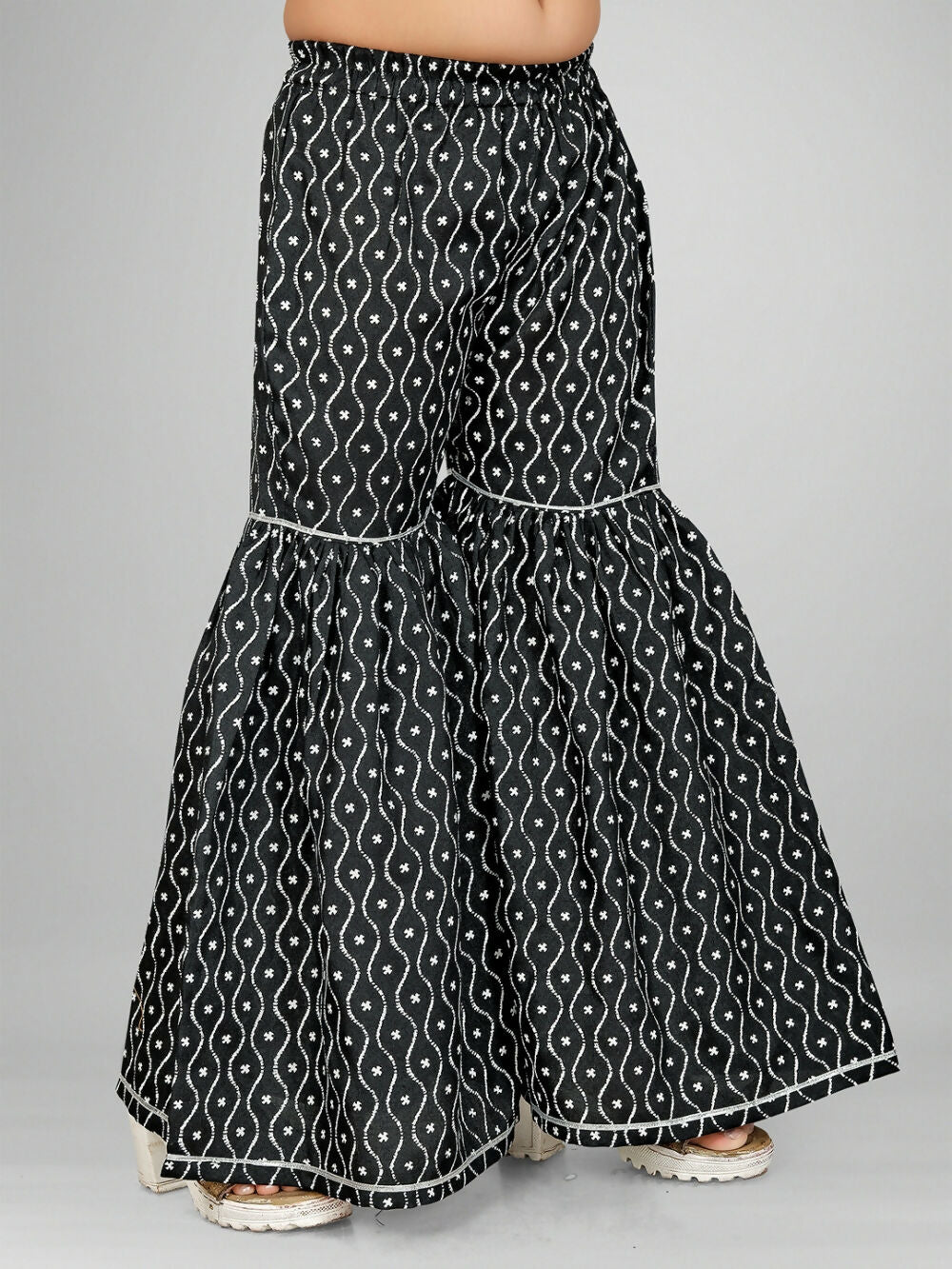 Divine Drape Girls Rayon Black Printed Straight Kids Kurta Sharara With Dupatta