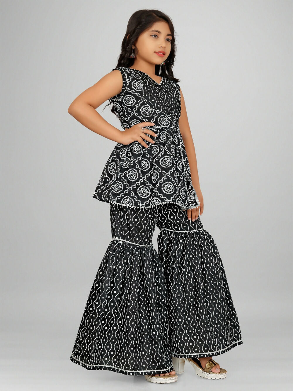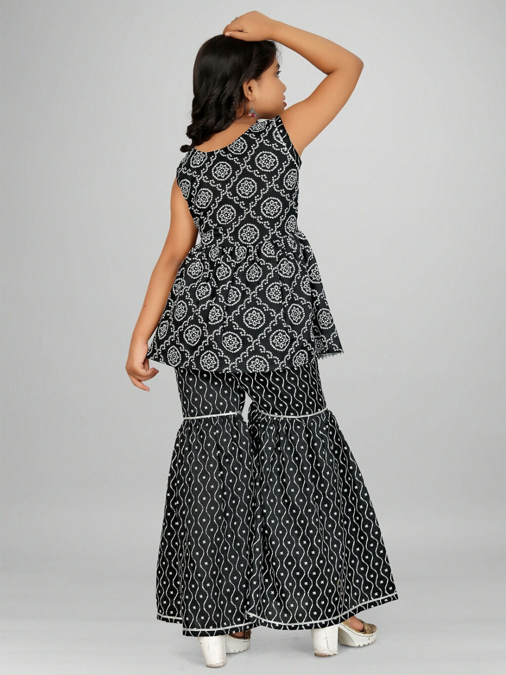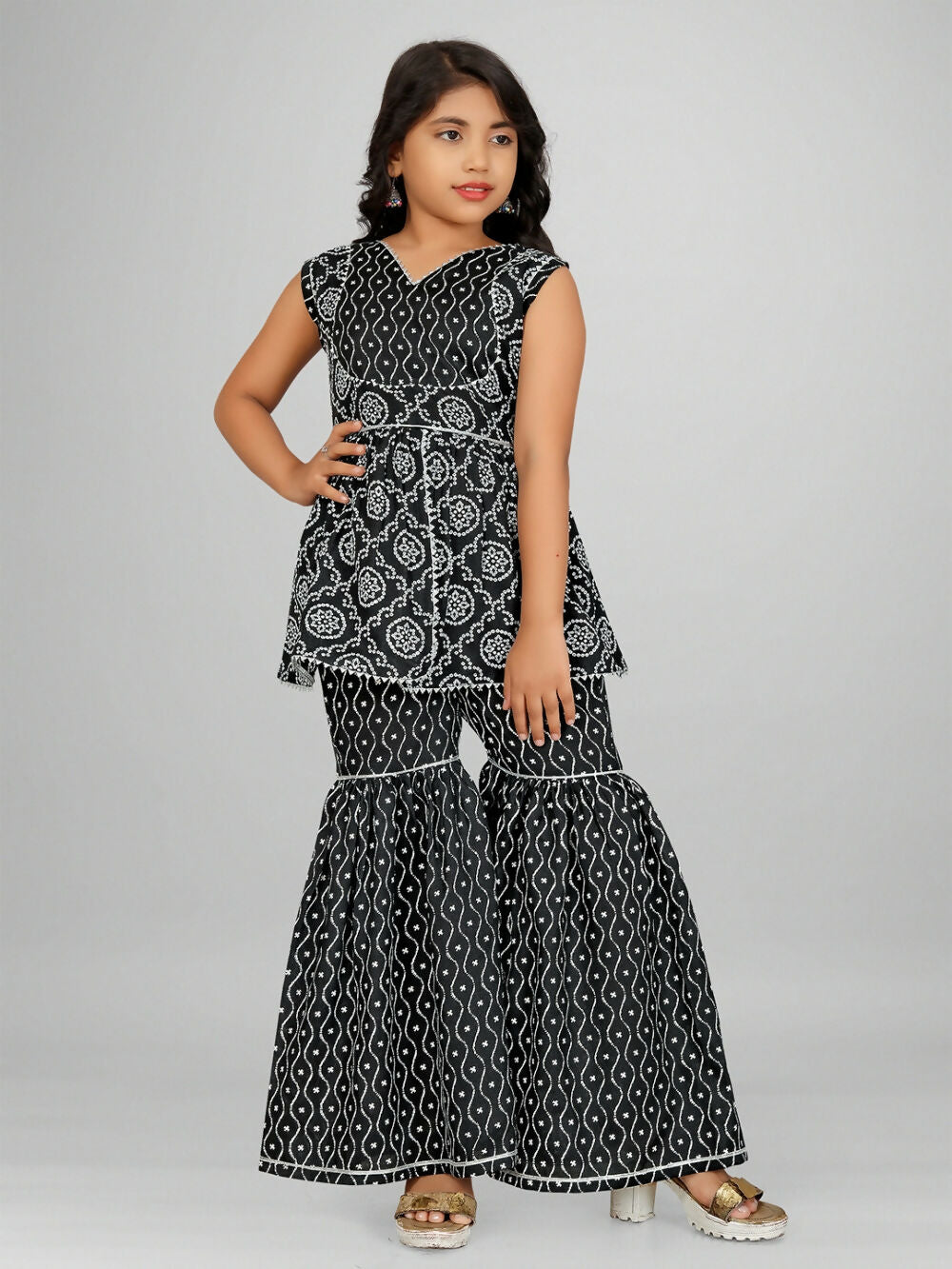 Divine Drape Girls Rayon Black Printed Straight Kids Kurta Sharara With Dupatta