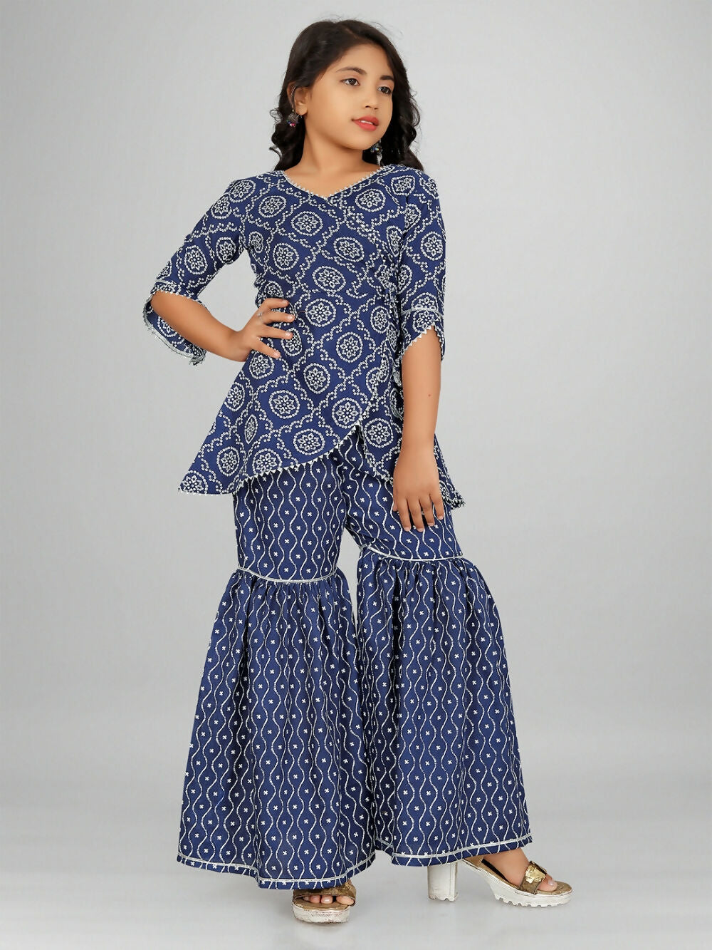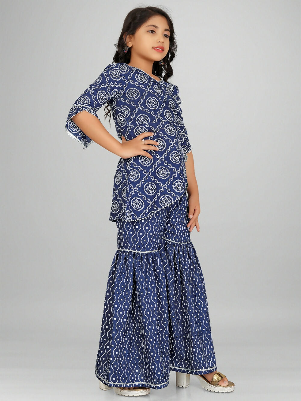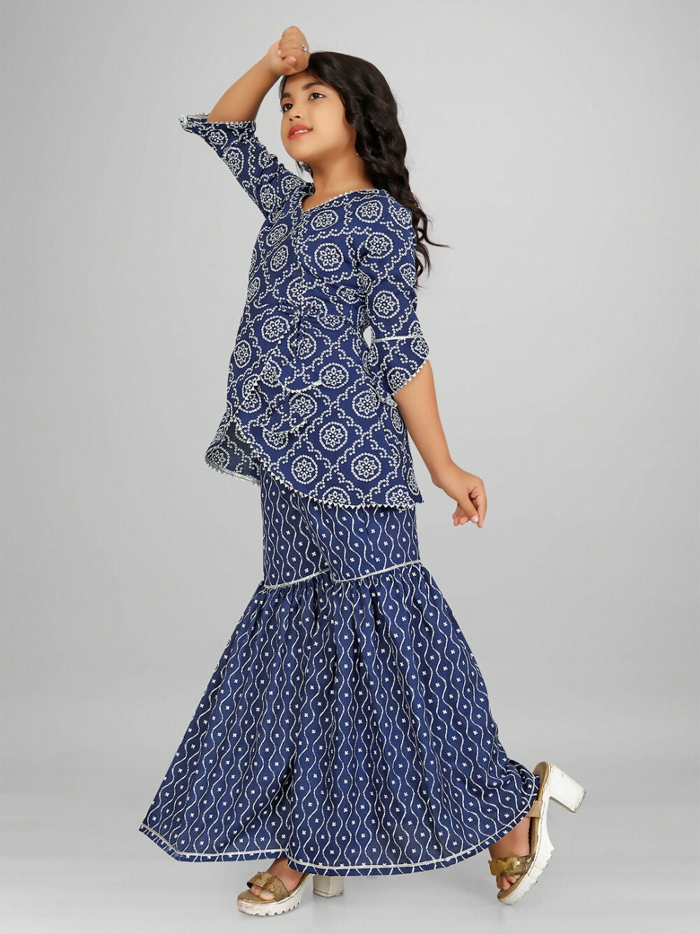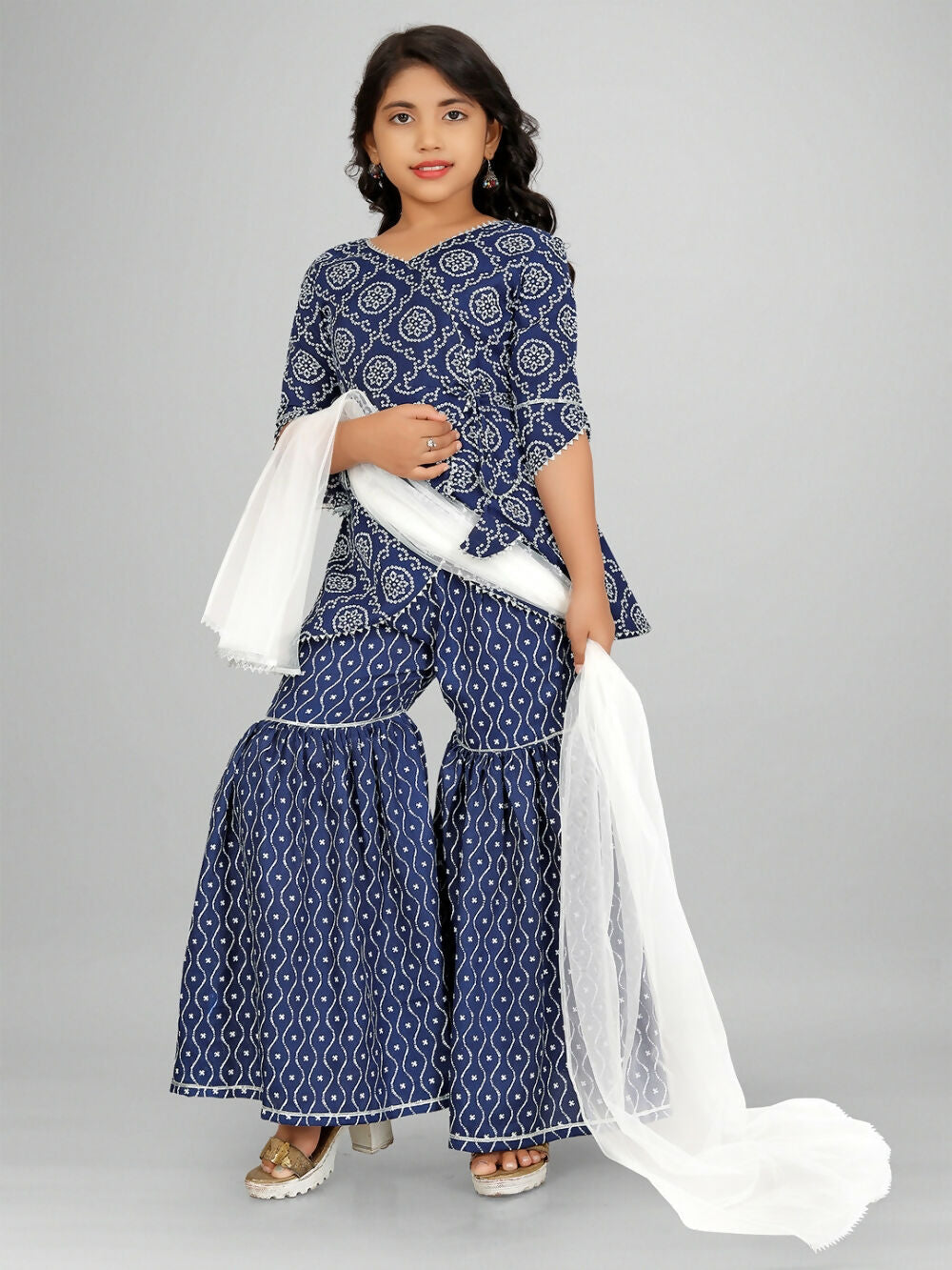 Divine Drape Girls Rayon Blue Printed Straight Kids Kurta Sharara With Dupatta