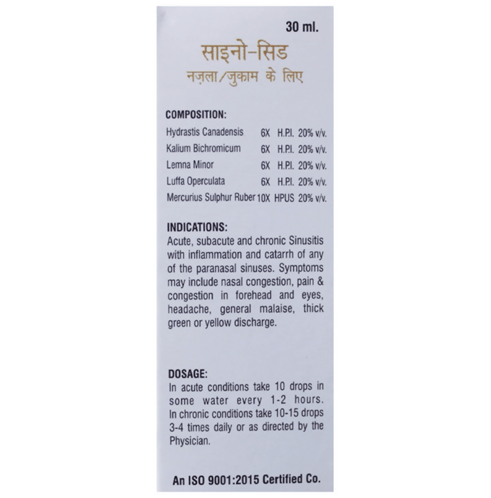 Composition: Each 1ml. Contains Hydrastis Canadensis 6x 20% v/v, Kali Bichromicum 6x 20% v/v, Lemna Minor 3x 20% v/v, Luffa Operculata 6x 20% v/v, Mercurius Sulphuratus Ruber 8x 20% v/v, Alcohol Content 90% v/v.