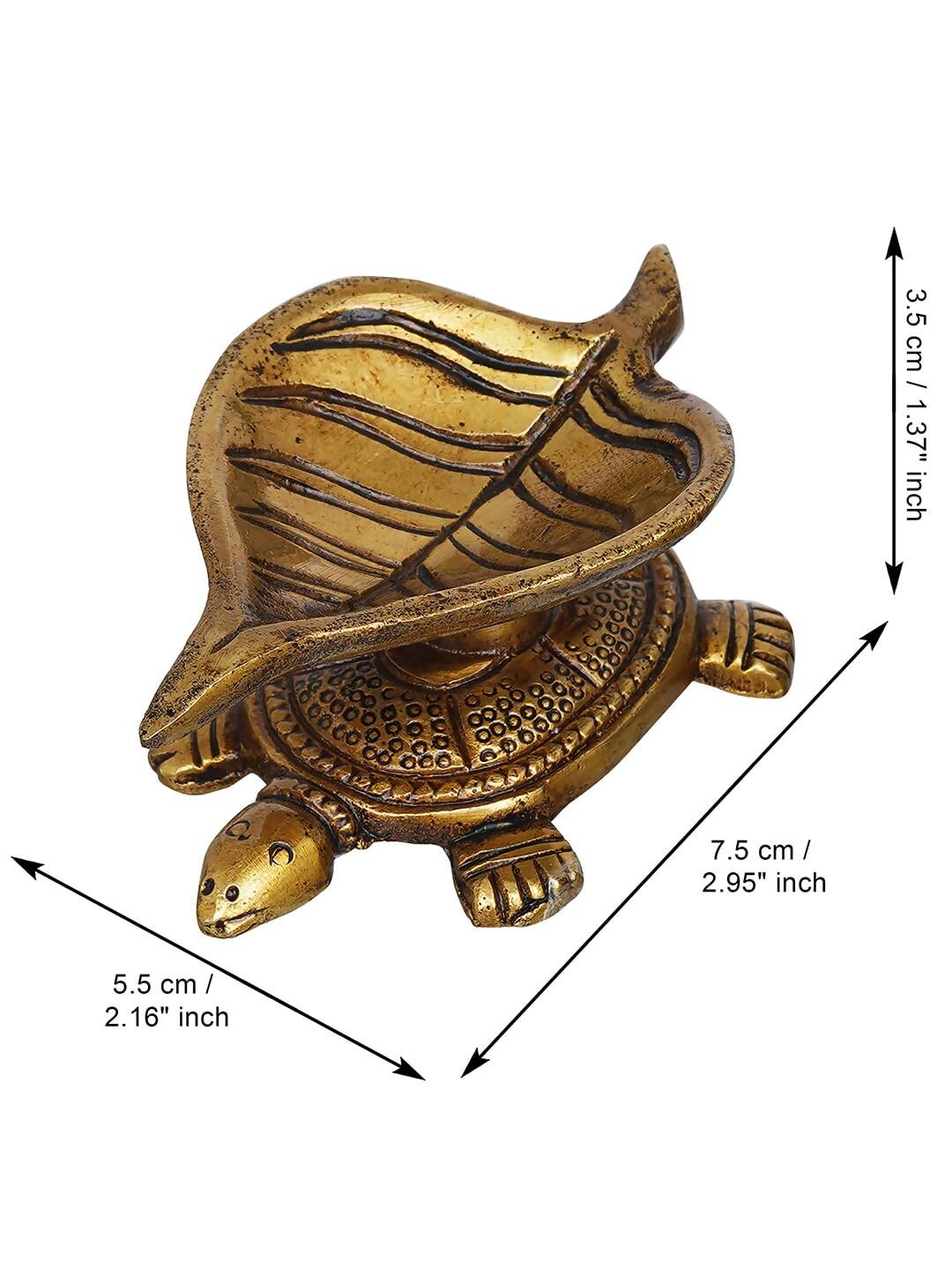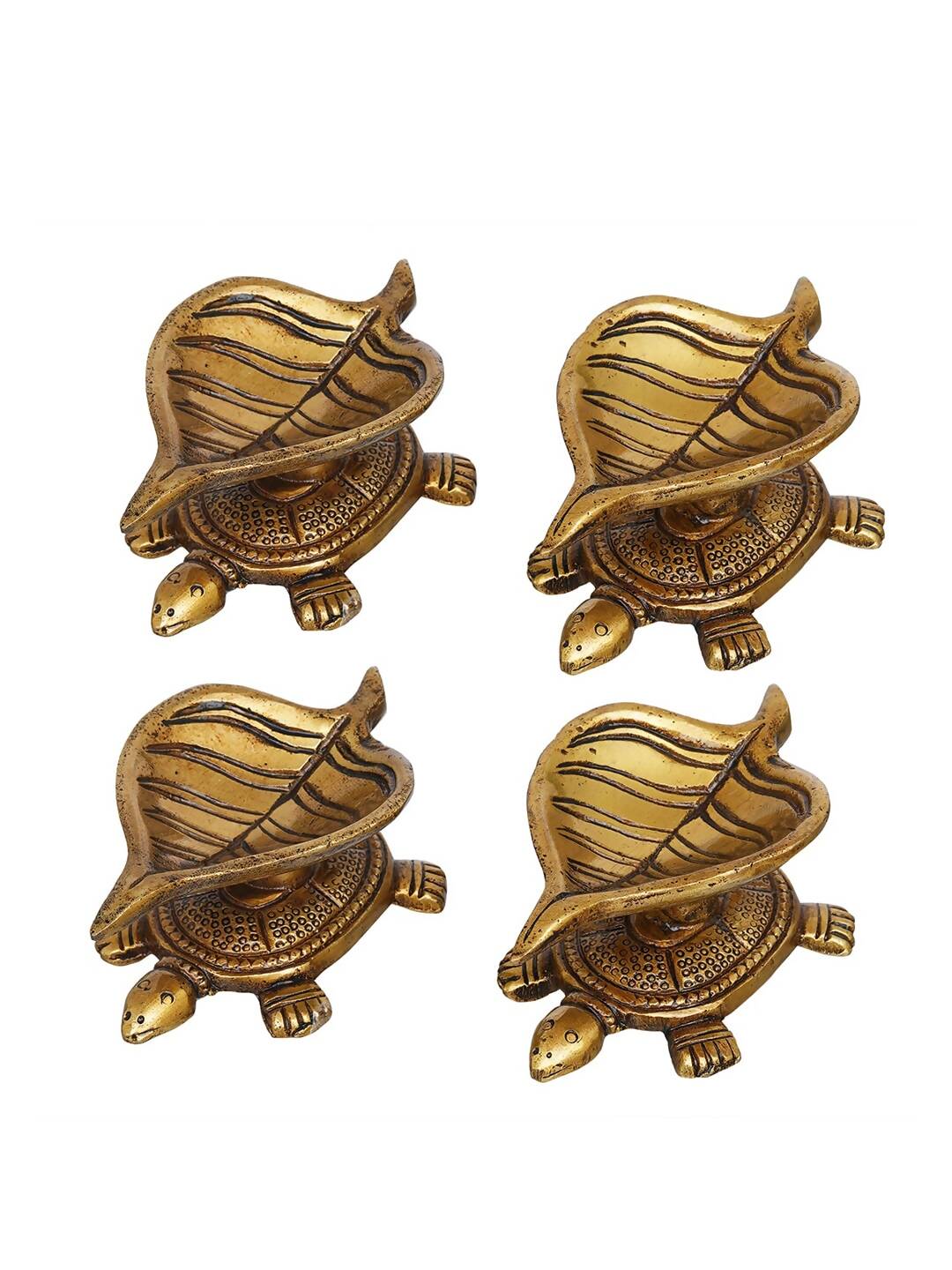 eCraftIndia 4 Pieces Beige Tortoise Statue Leaf Design Diyas
