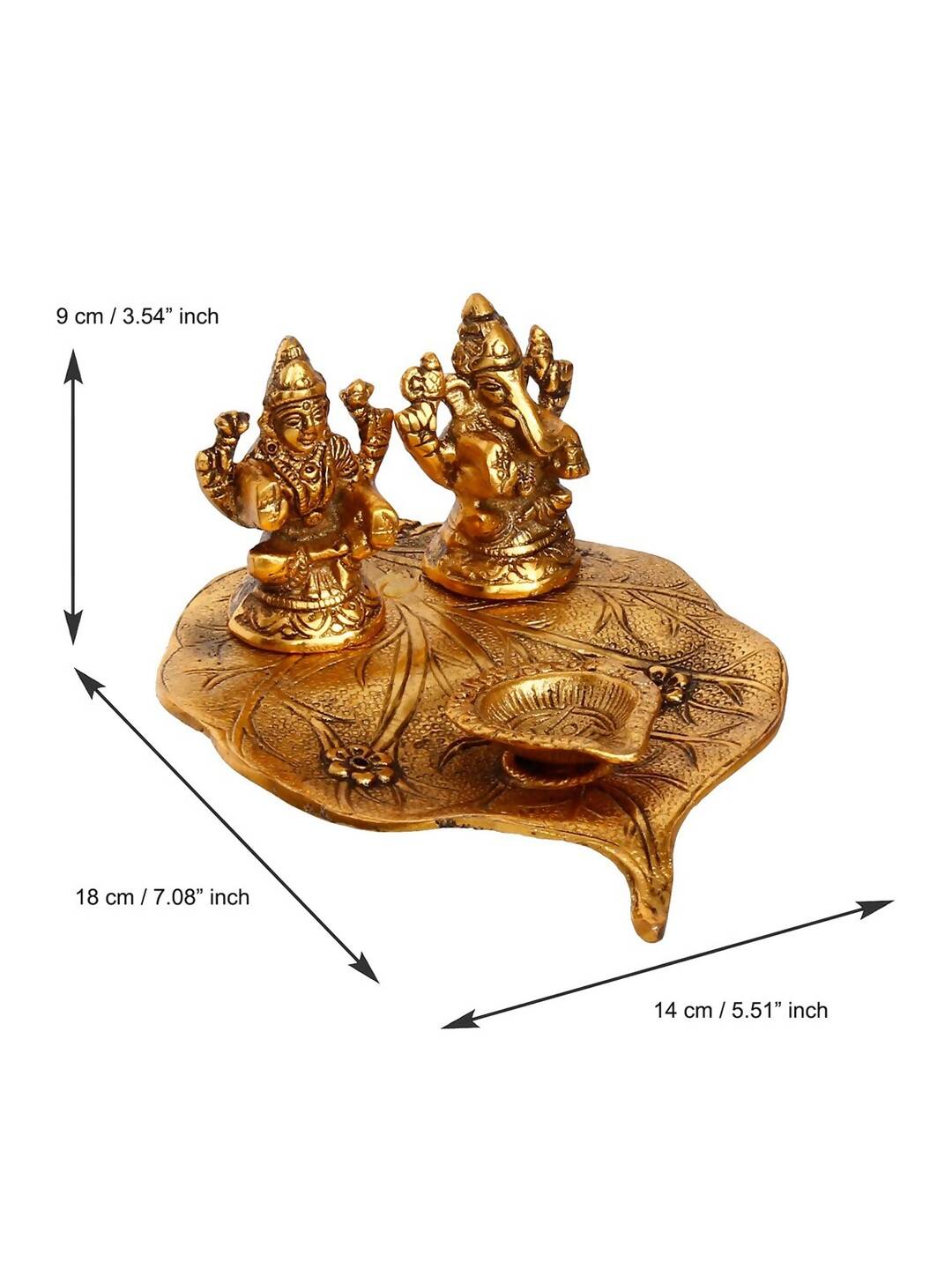 eCraftIndia Antique Gold-Toned Metal Handcrafted Laxmi Ganesh With Diya On Leaf