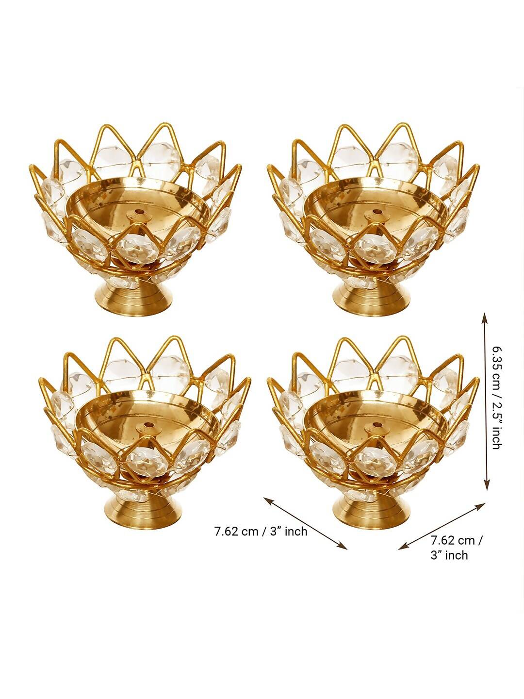 eCraftIndia Gold-Toned 2 Pieces Crystal Lotus Shape Brass Diyas