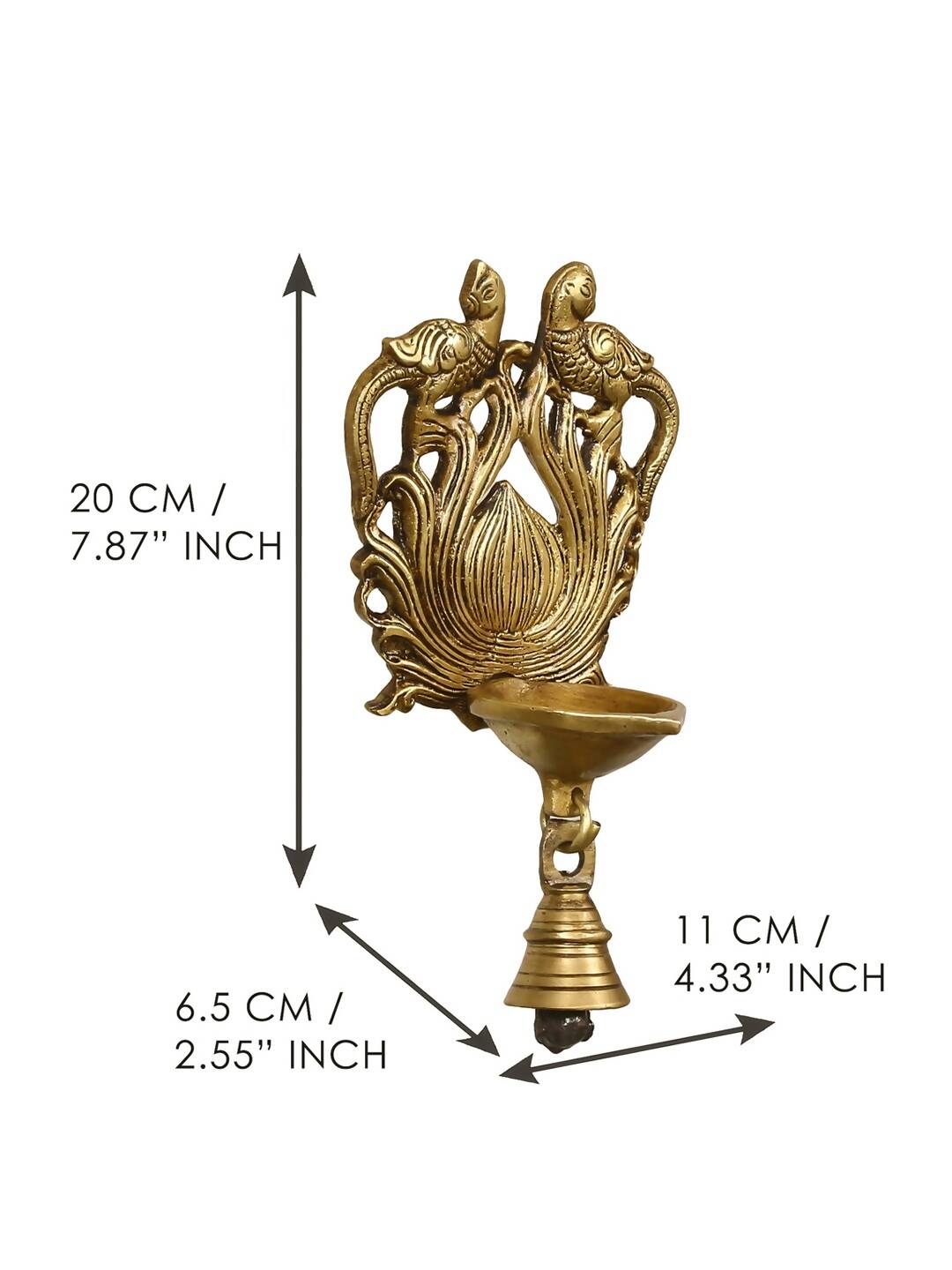 eCraftIndia Gold-Toned Handcrafted Antique Finish Diya with Bells Decorative Wall Hanging Showpiece