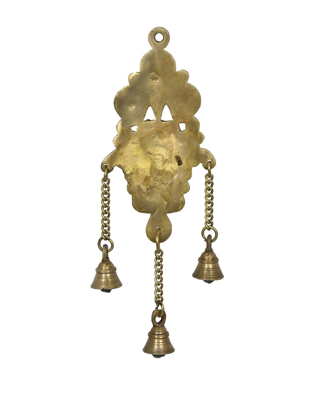 eCraftIndia Gold-Toned Handcrafted Antique Finish Diya with Bells Decorative Wall Hanging Showpiece