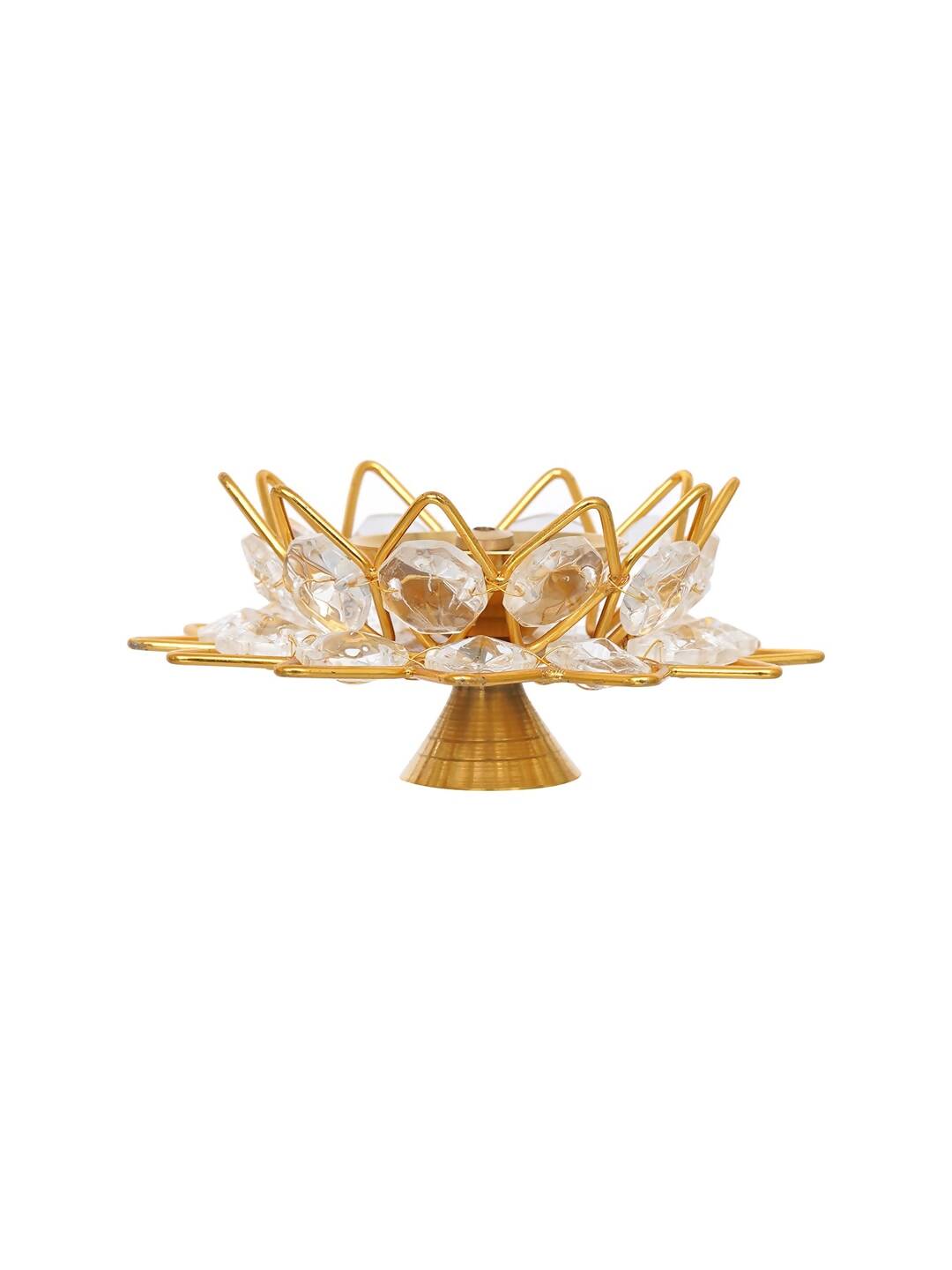 eCraftIndia Gold-Toned & White 2 Pieces Crystal Lotus Shape Brass Diyas
