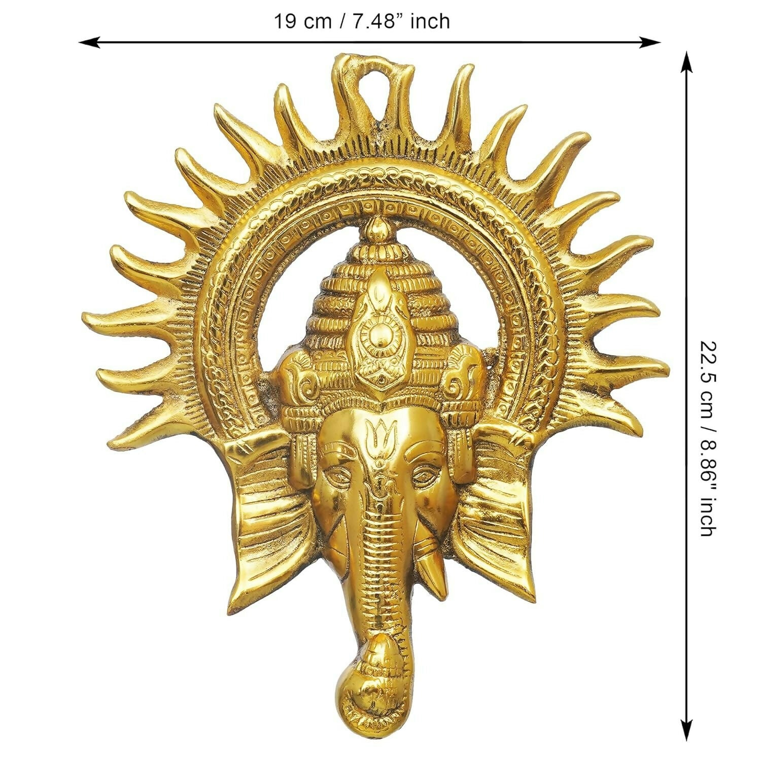 eCraftIndia Golden Lord Ganesha With Sun Decorative Metal Wall Hanging
